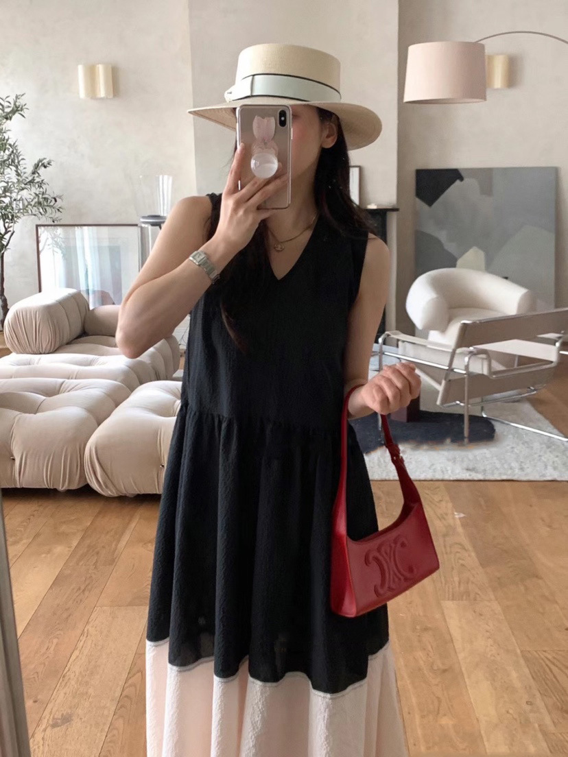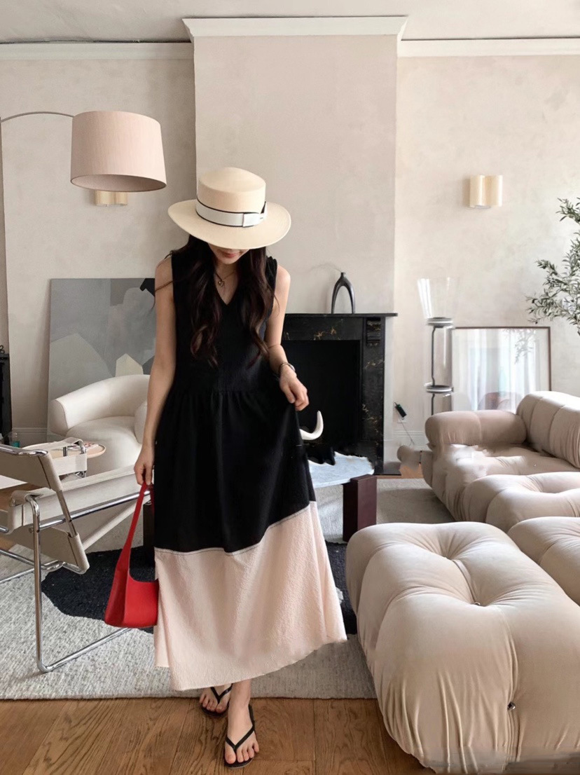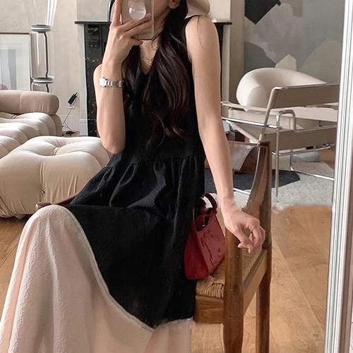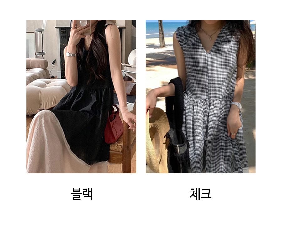◈[당일발송] 브이넥 슬리브리스 내츄럴 원피스