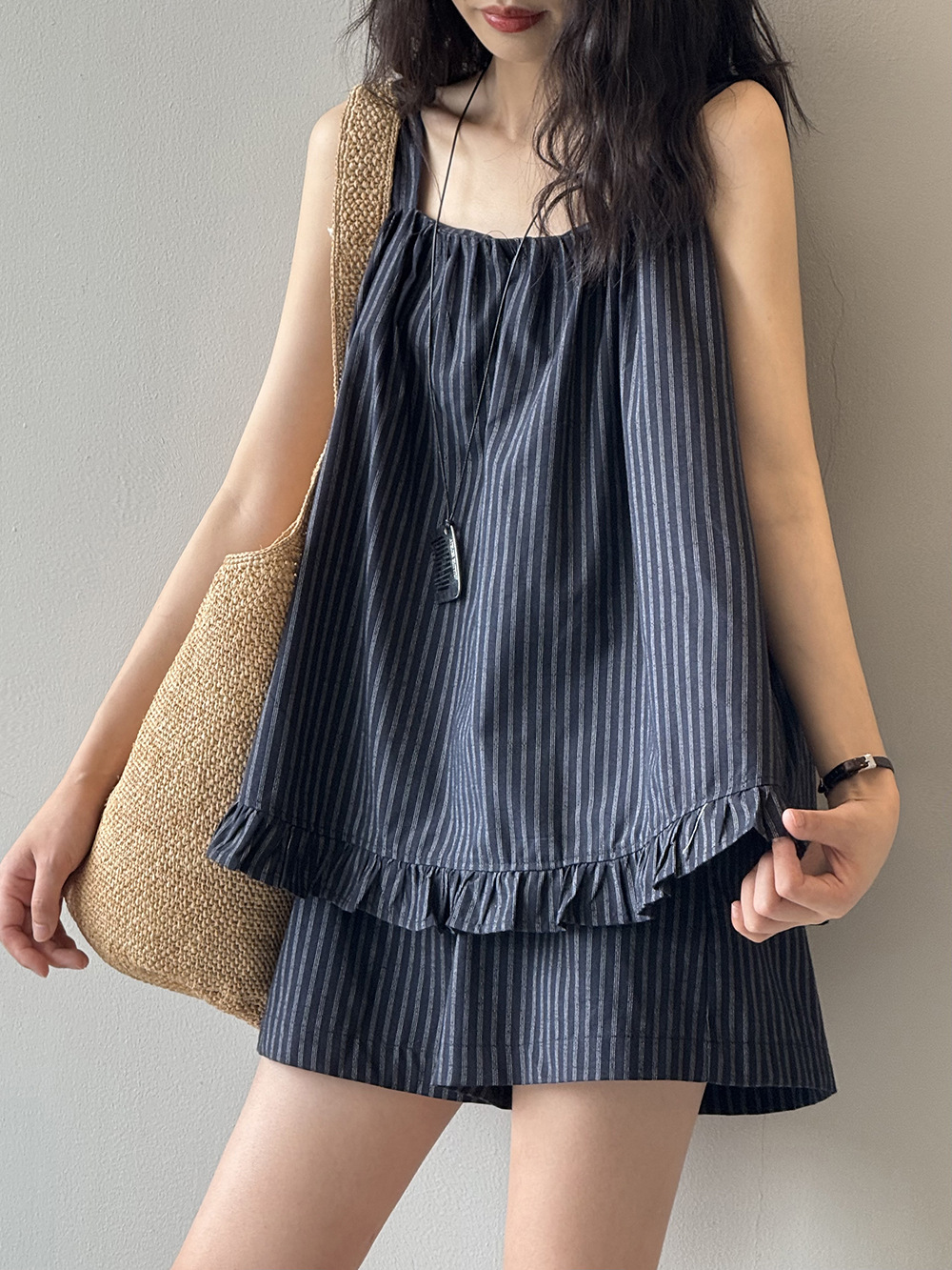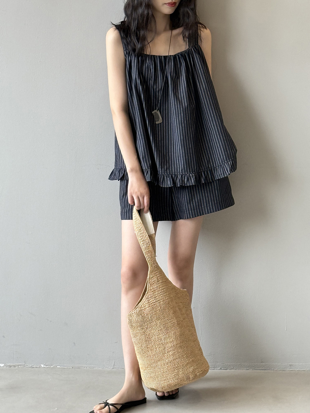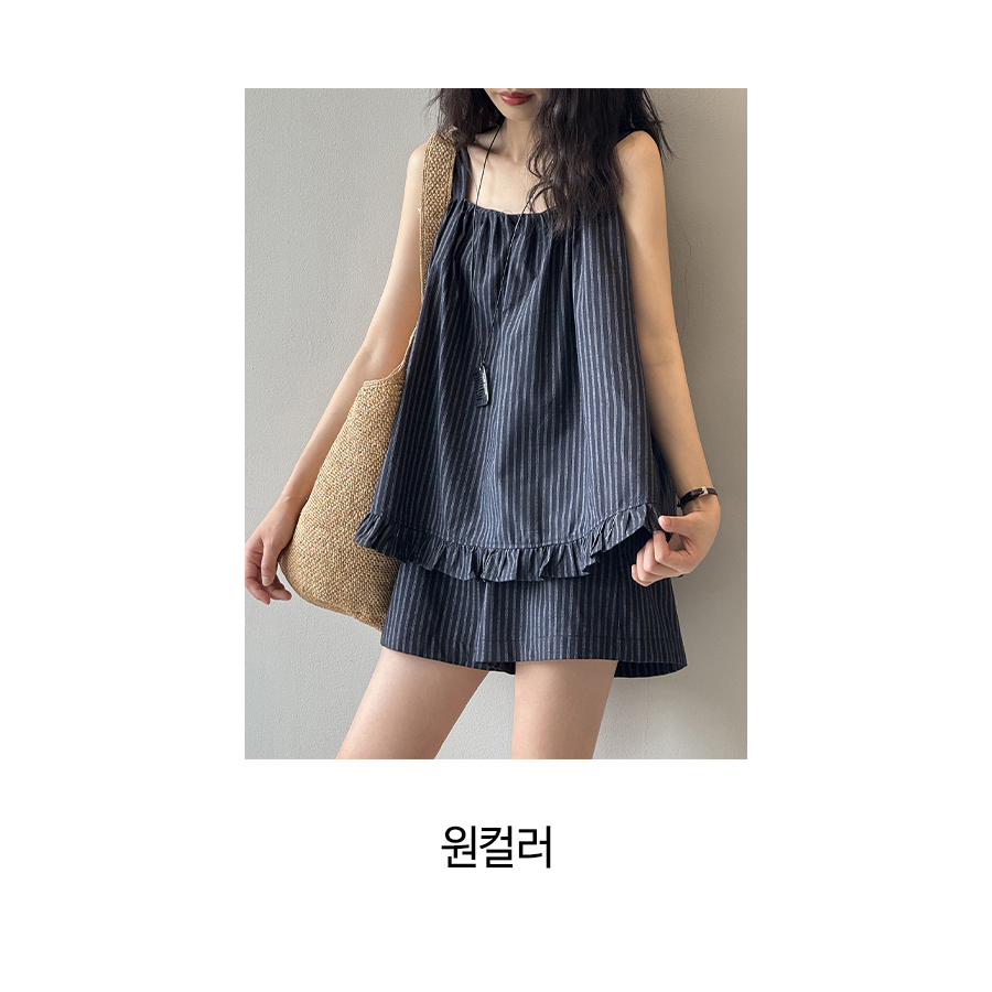 179527 [당일발송]★목요특가 자정마감 50%★스트라이프 프릴 나시&밴딩 숏팬츠 2SET 49980