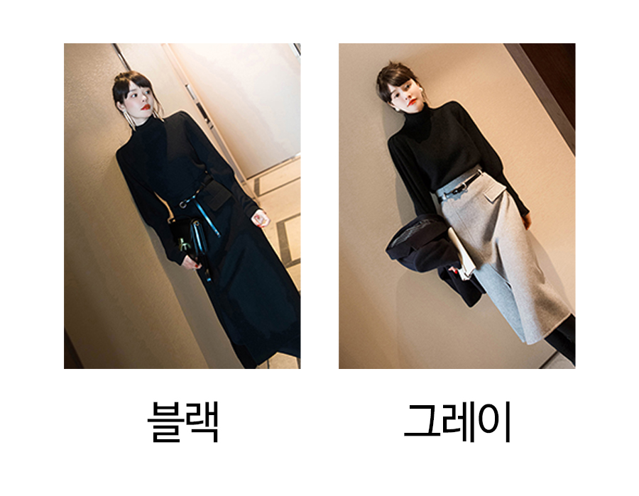 172852 ◈[당일발송] 세련된 포멀 폴라 니트 트임 스커트 2SET 47990