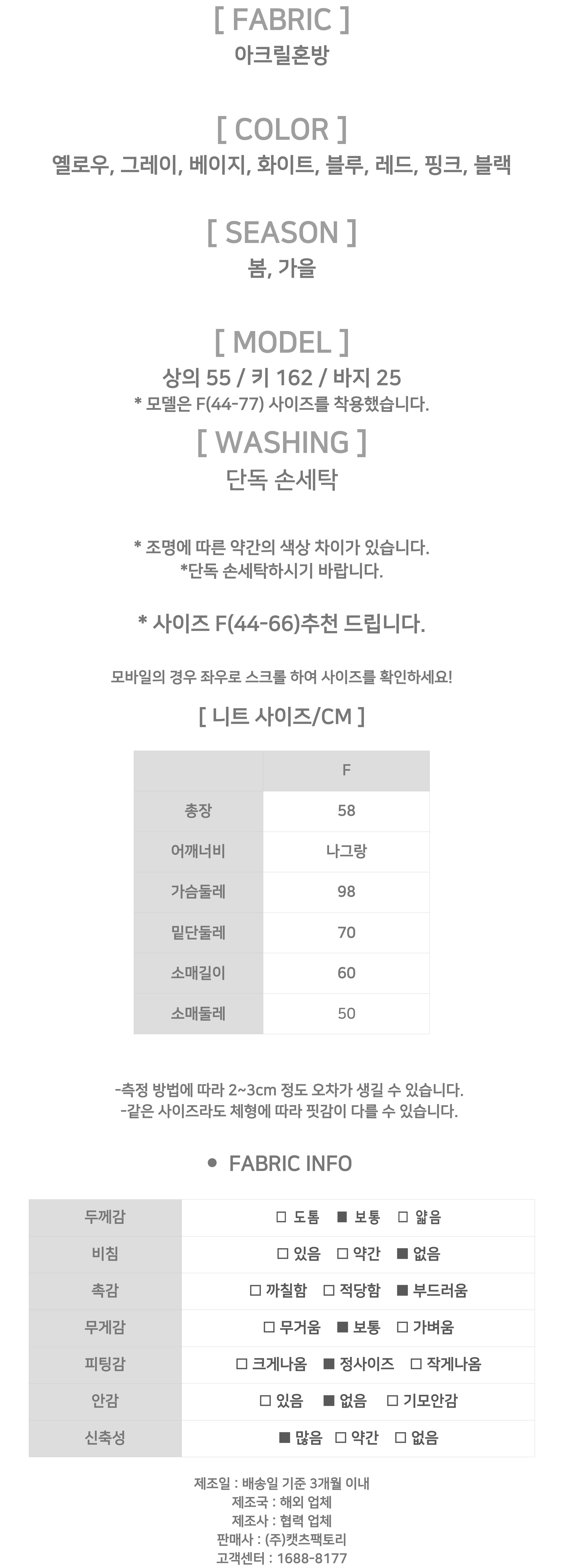 - 상품의 색상은 사용하시는 모니터 사양에 따라 실제 색상과 다소 차이가 있을 수 있으며, 이는 불량의 사유가 되지 않습니다.