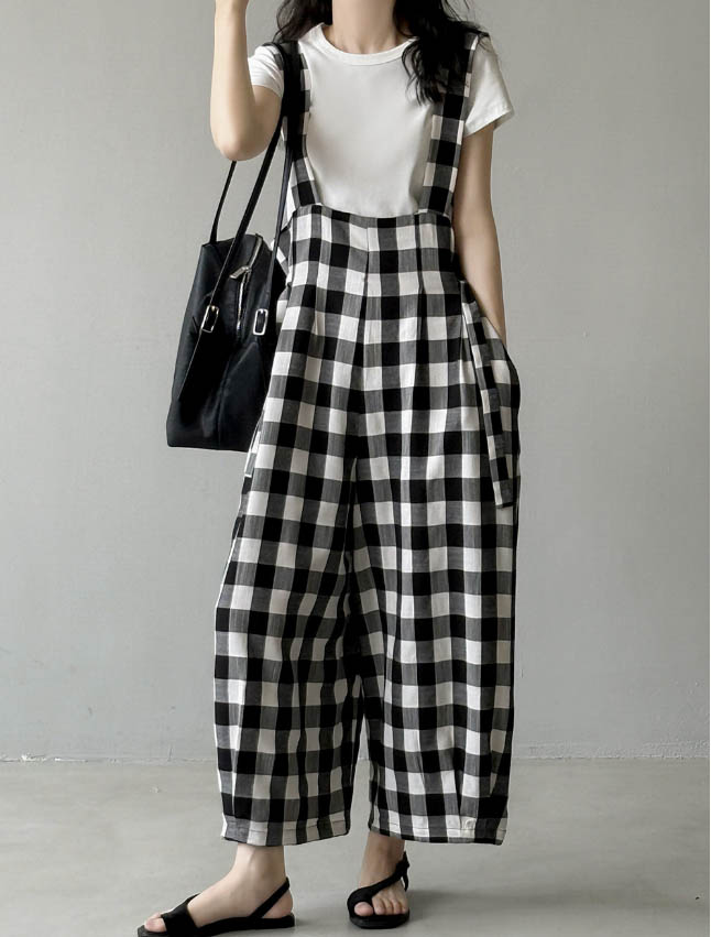 ◈[당일발송] 보이핏 체크 멜빵 점프수트