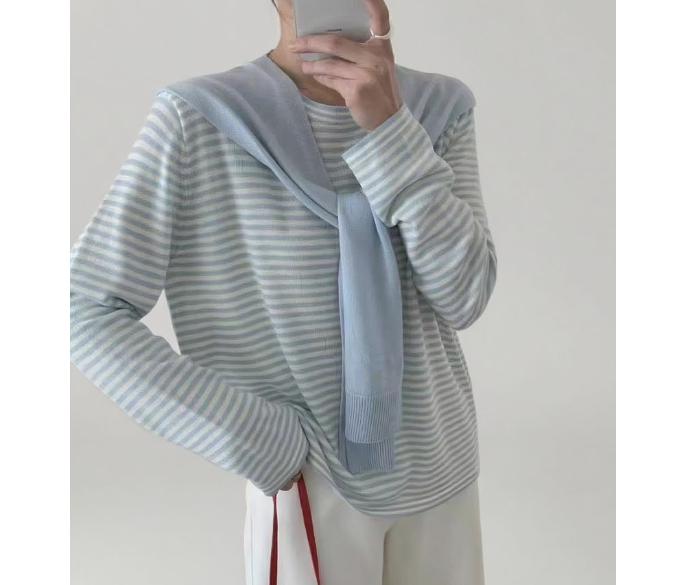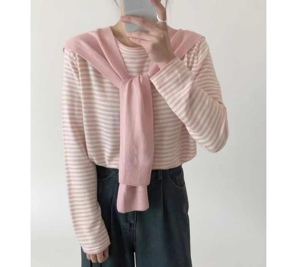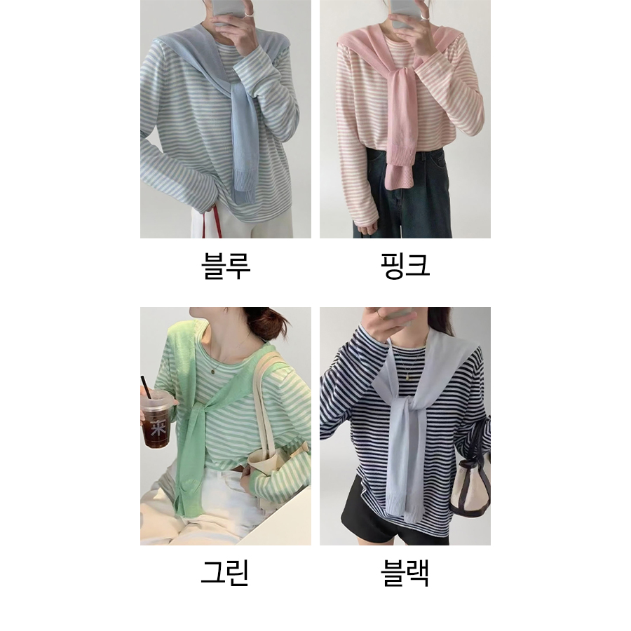 ◈[당일발송] 파스텔 스트라이프 숄 티셔츠