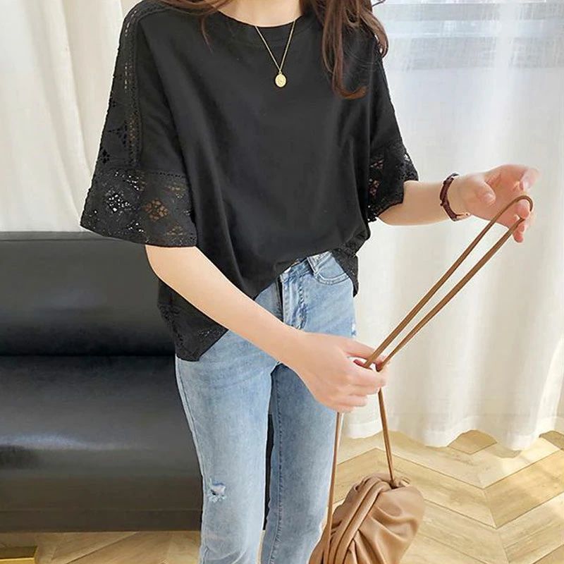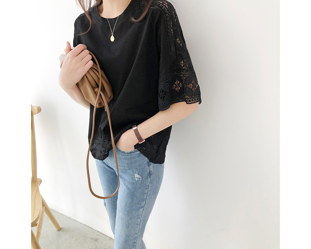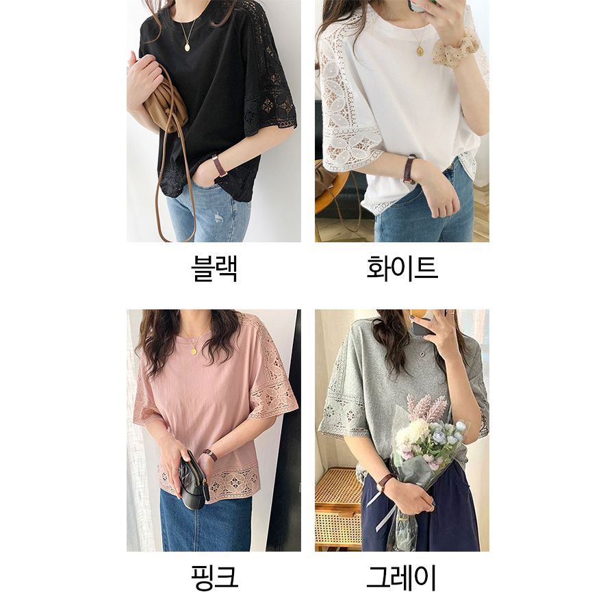 ◈[당일발송] 앤틱 페미닌 펀칭 반팔티