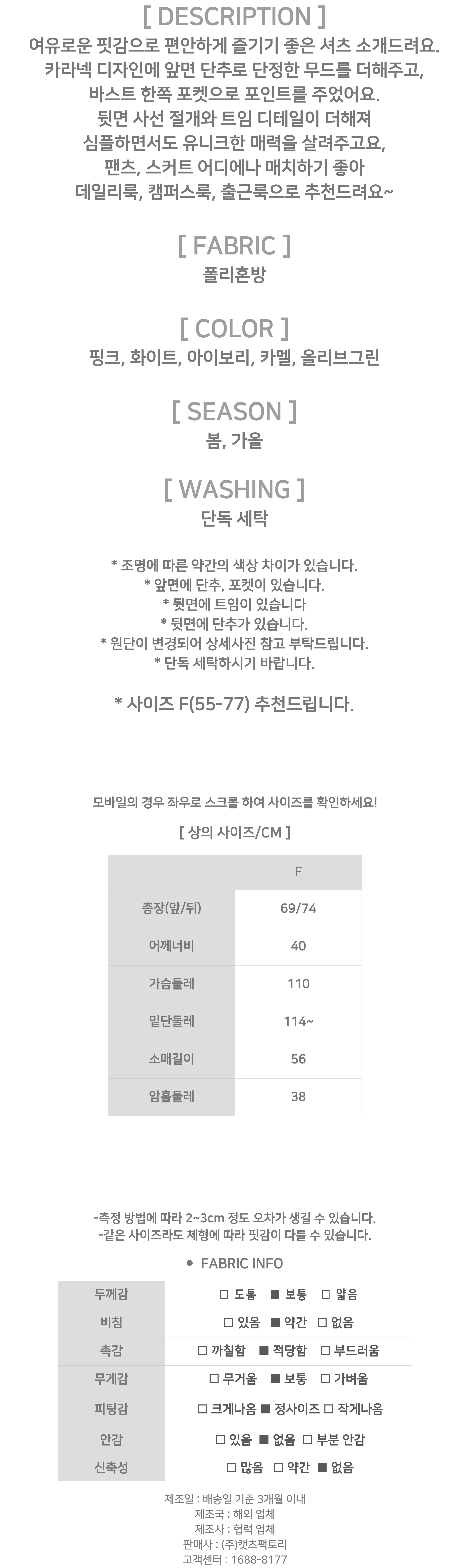 뒷절개 포인트 원포켓 긴팔 셔츠