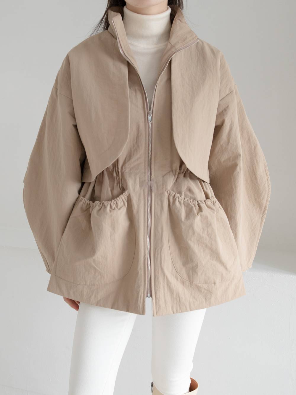167545 1온스 돌먼 소매 허리 스트링 집업 80800