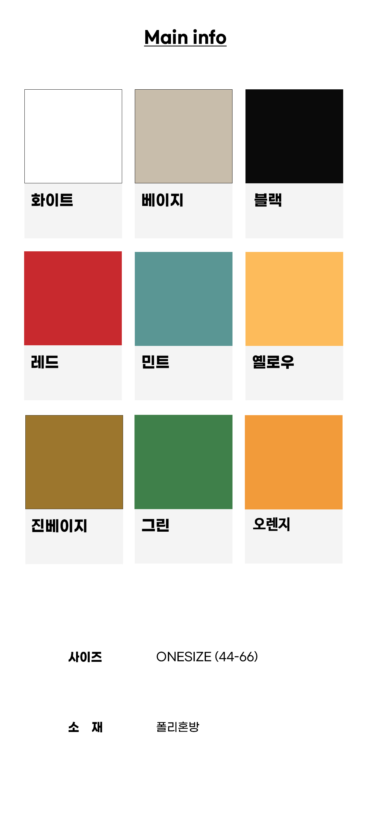 레드, 민트, 옐로우, 화이트, 베이지, 블랙