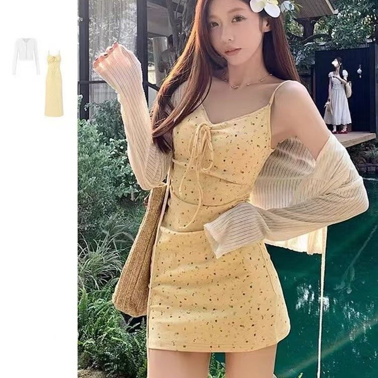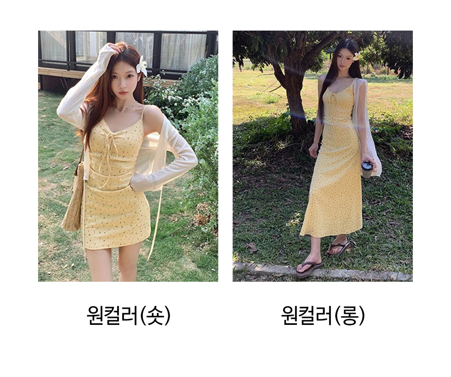 177904 ◈[당일발송] 여리핏 골지 가디건&잔꽃 끈나시 원피스 2SET[롱/숏 2가지 타입] 27390