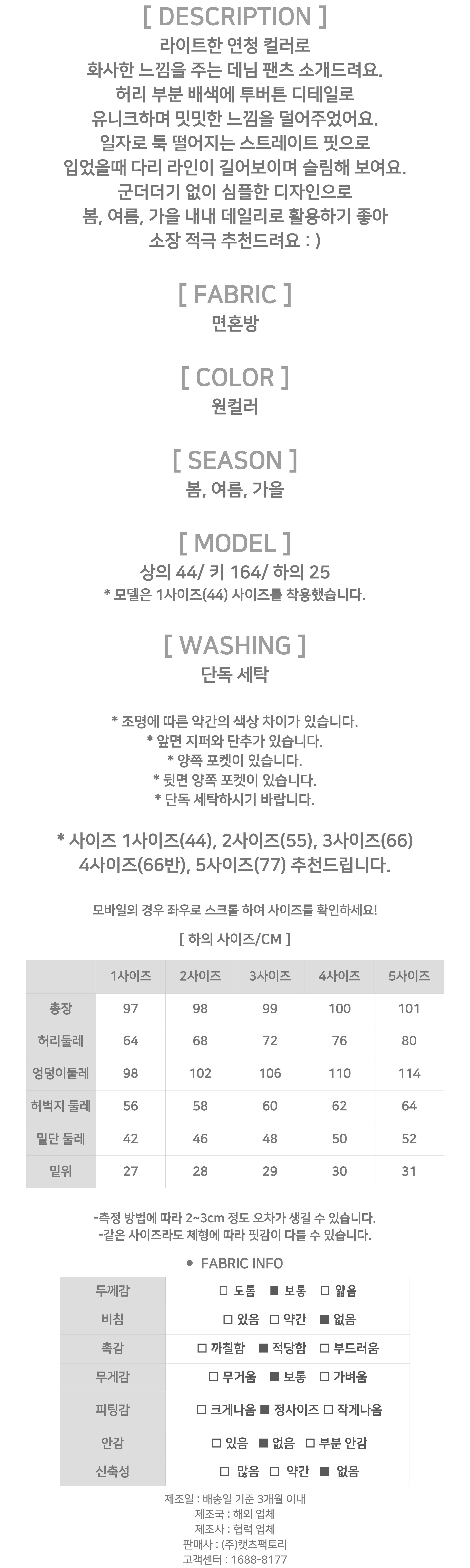 178088 라이트 투버튼 일자핏 데님 팬츠 28180