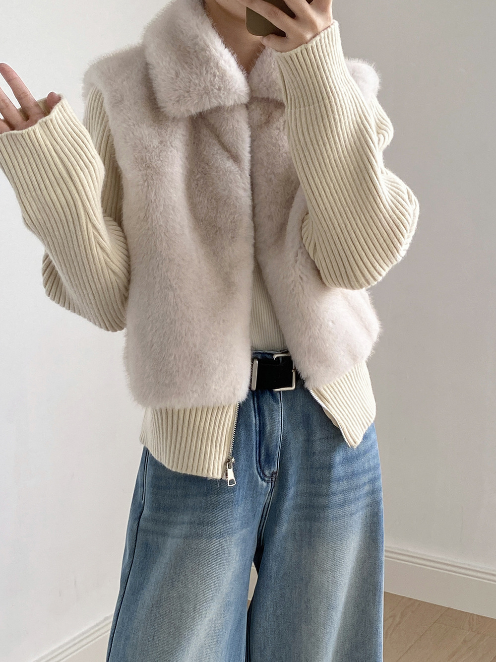 ◈[당일발송] ★월요특가 자정마감 50%★윈터 믹스매치 퍼 니트 집업