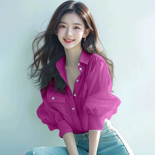 179603 [당일발송]페미닌 퍼프 포켓 카라 셔츠 19980