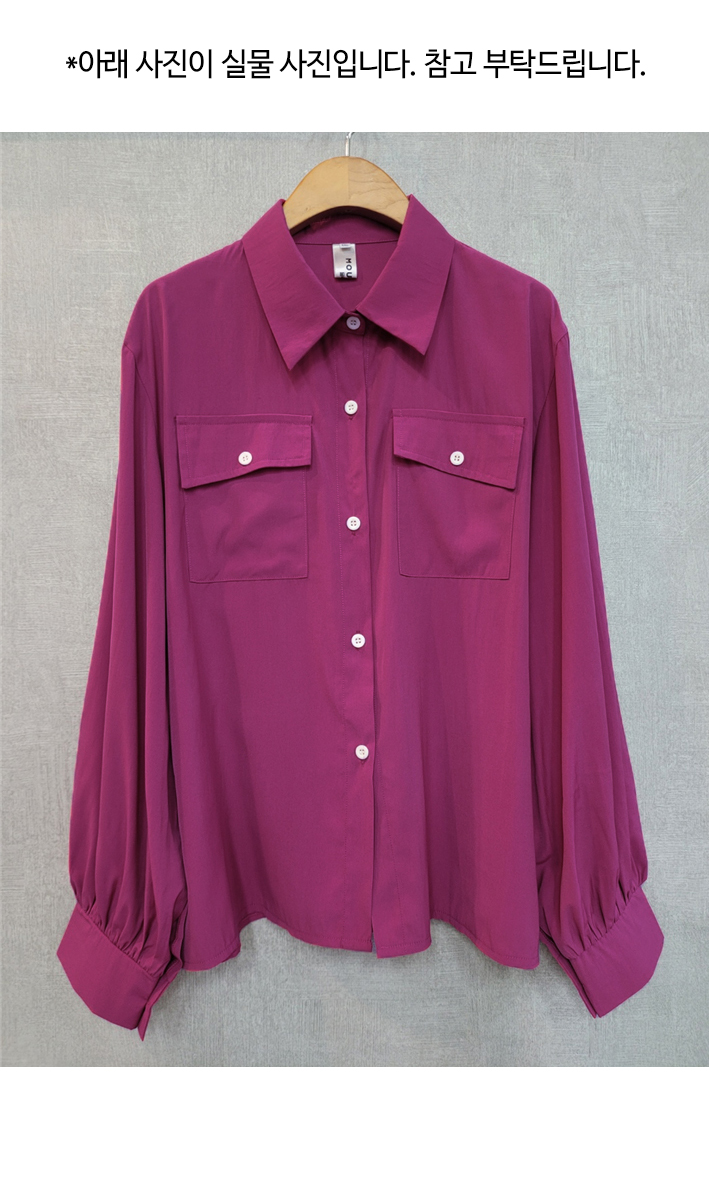 [당일발송]페미닌 퍼프 포켓 카라 셔츠