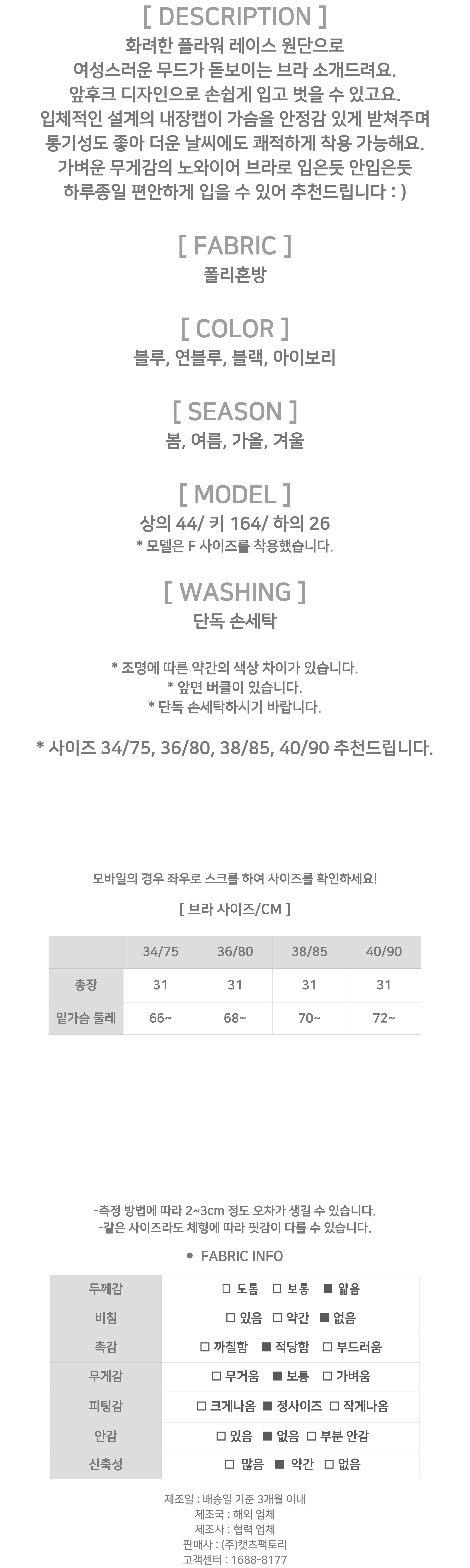 177697 앞후크 플라워 레이스 볼륨 브라 13880