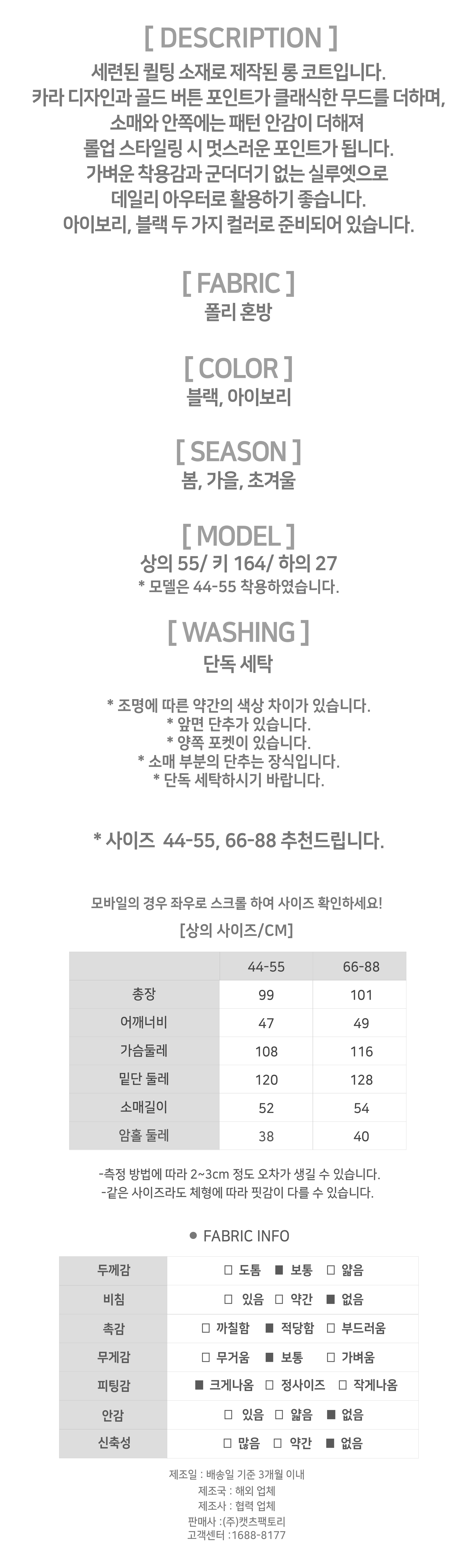 181041 ◈[당일발송] 퀼팅 패턴 안감 코트 75180