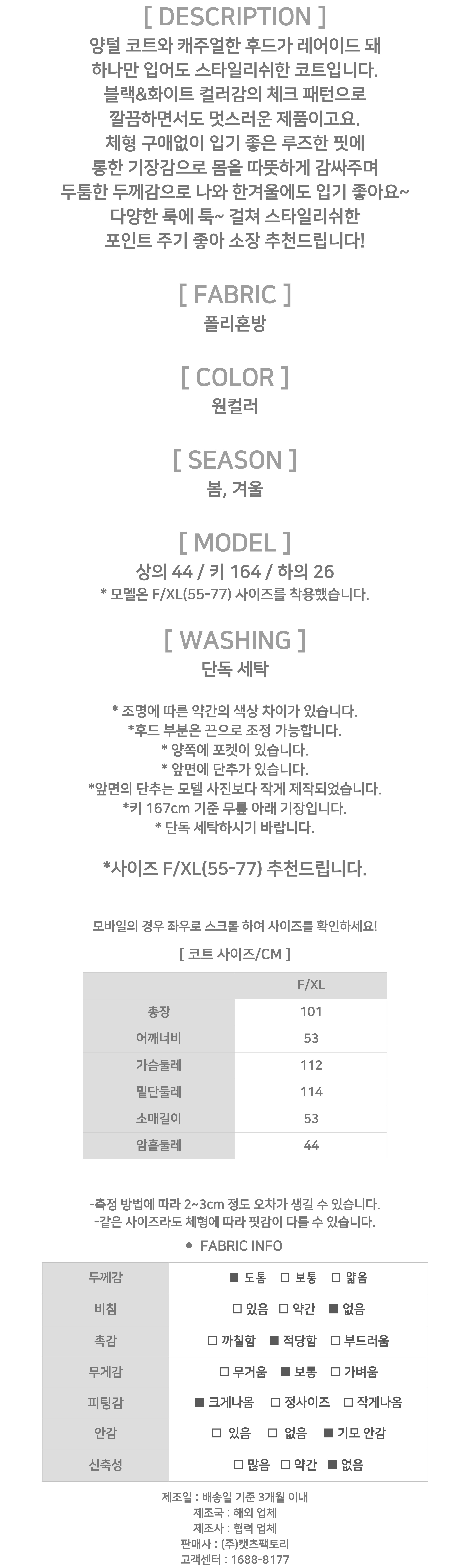 172440 ◈[당일발송] ★월요특가 자정마감 50%★체크 양털 후드 롱 코트 99780