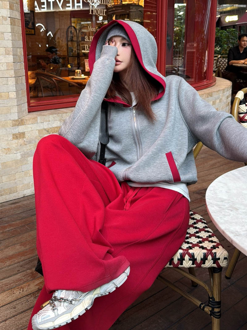 ◈[당일발송] 루즈핏 배색 포인트 후드 트레이닝 세트