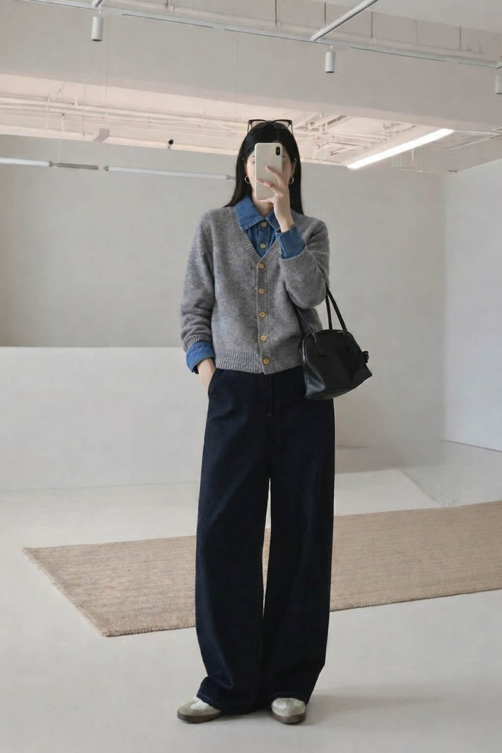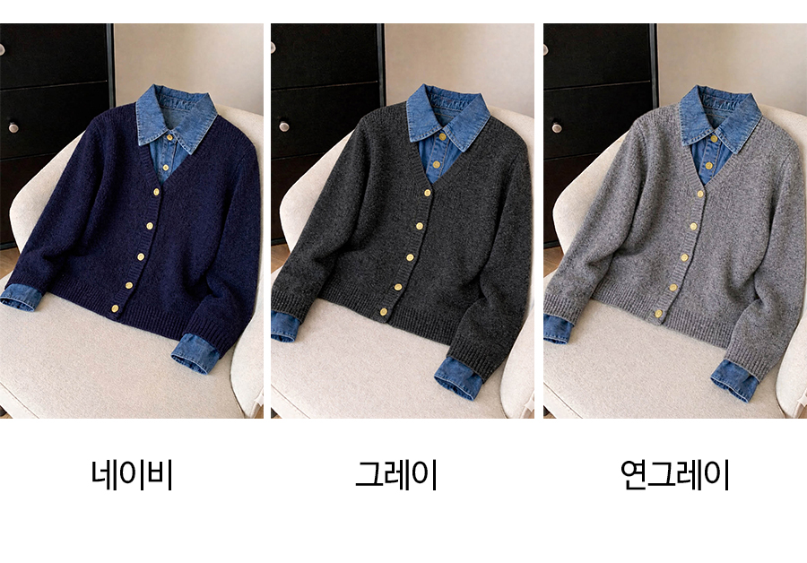 ◈[당일발송] ★목요특가 자정마감 50%★데님&니트 레이어드 블라우스