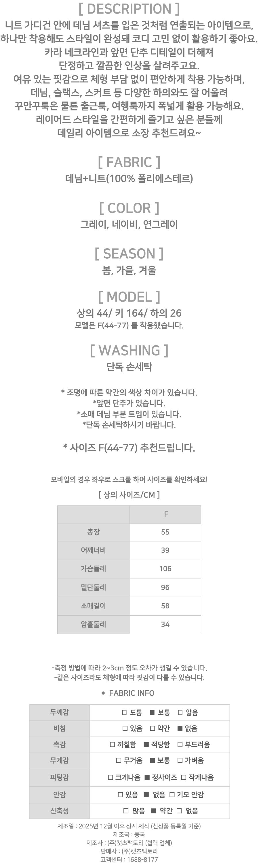 181744 ◈[당일발송] ★목요특가 자정마감 50%★데님&니트 레이어드 블라우스 59980