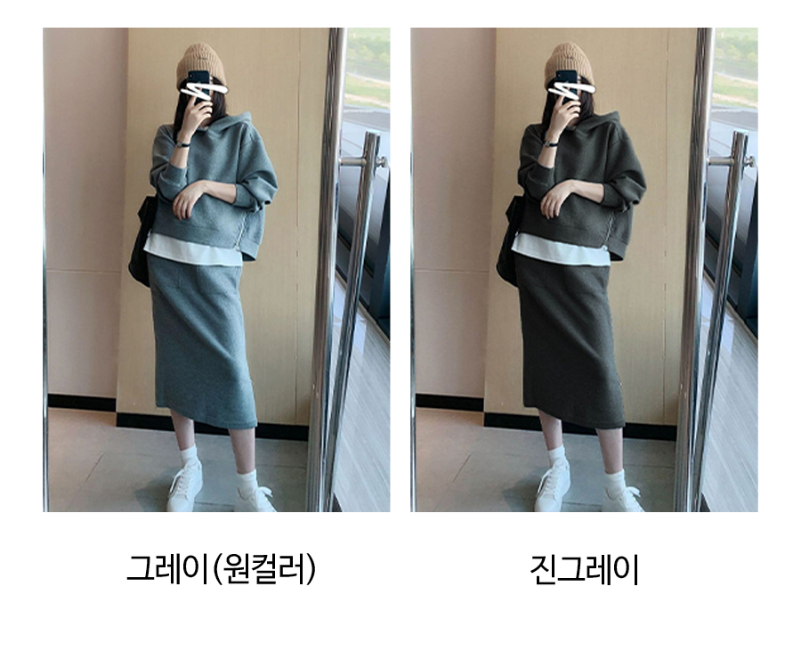 177021 유니크 옆지퍼 후드티&스커트 2SET 23490