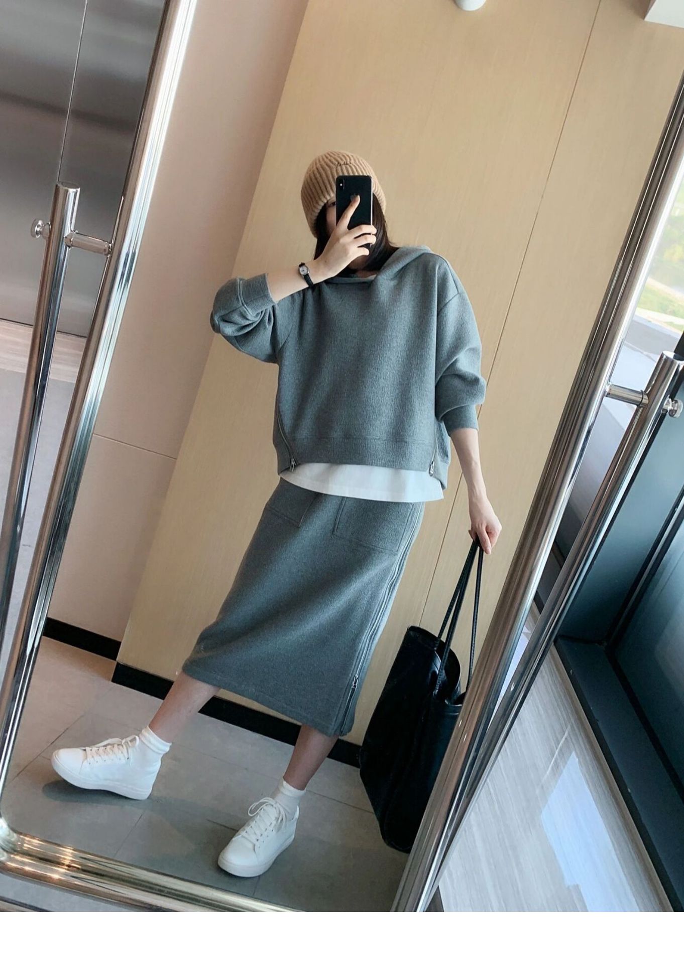 유니크 옆지퍼 후드티&스커트 2SET