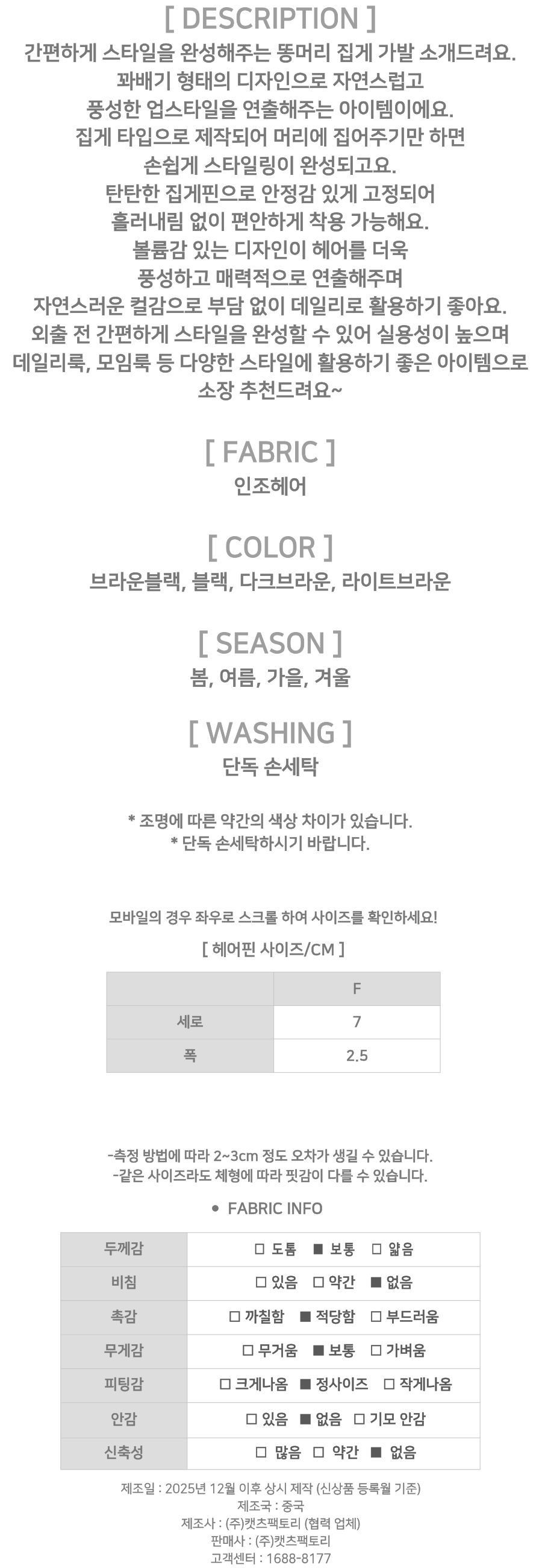 182272 꽈배기 똥머리 볼륨 집게 가발 7780