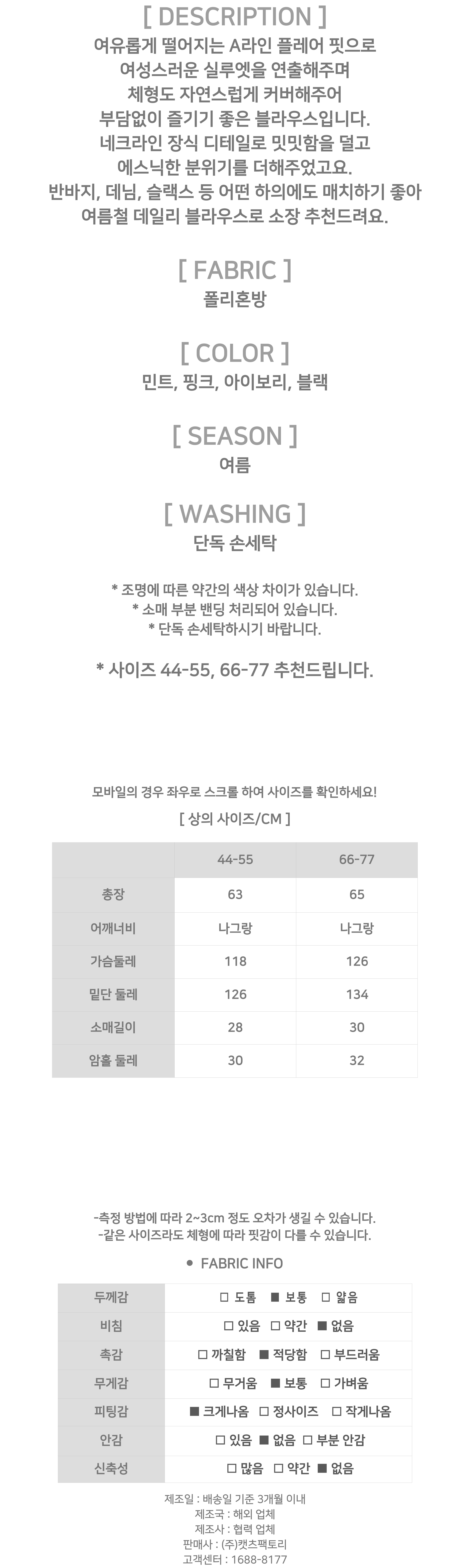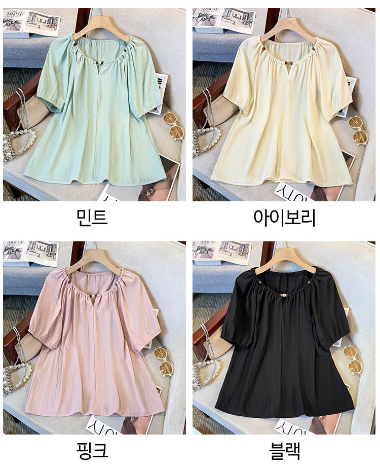 179189 ◈[당일발송] 루즈핏 플레어 반팔 블라우스 14380