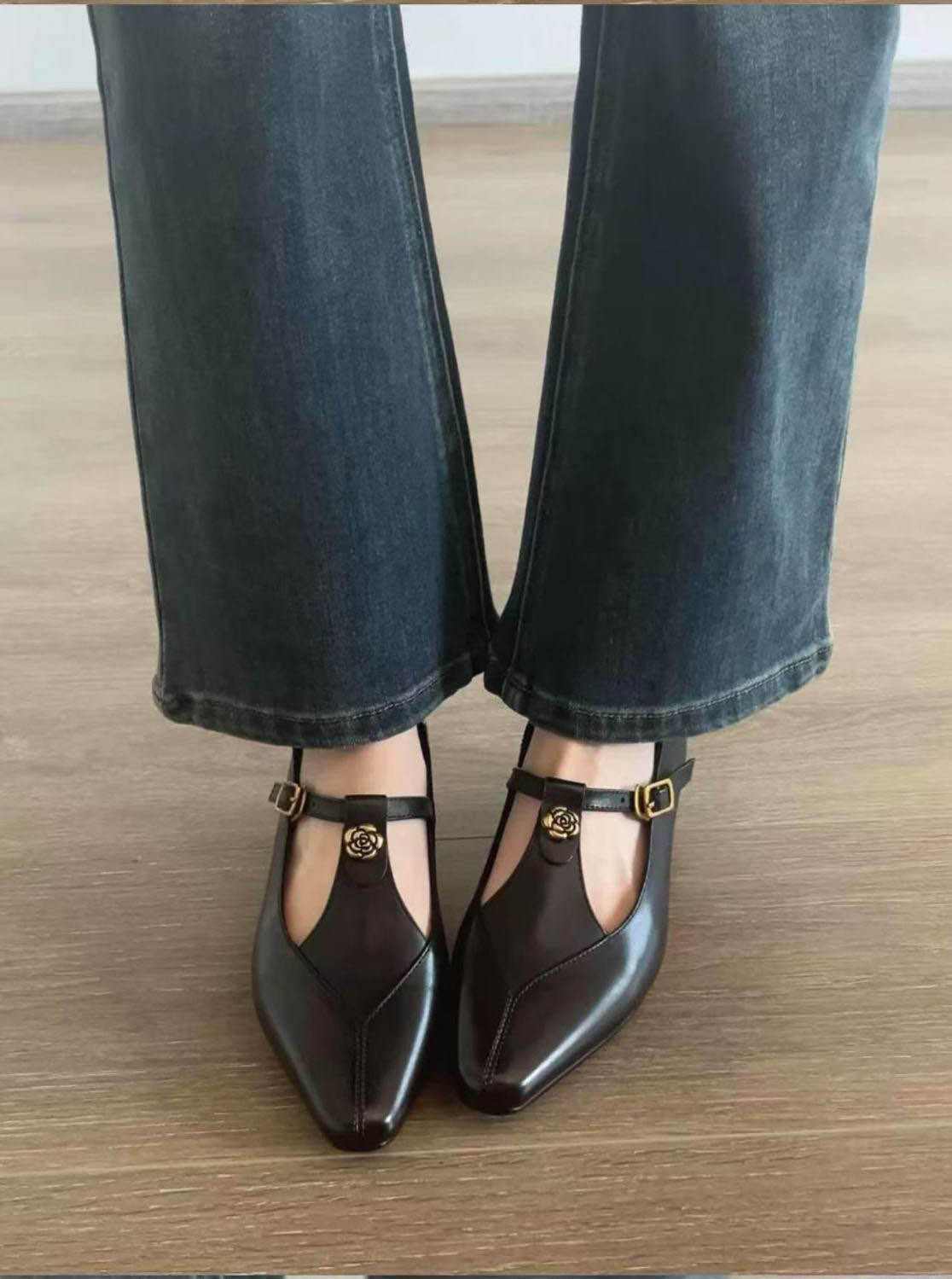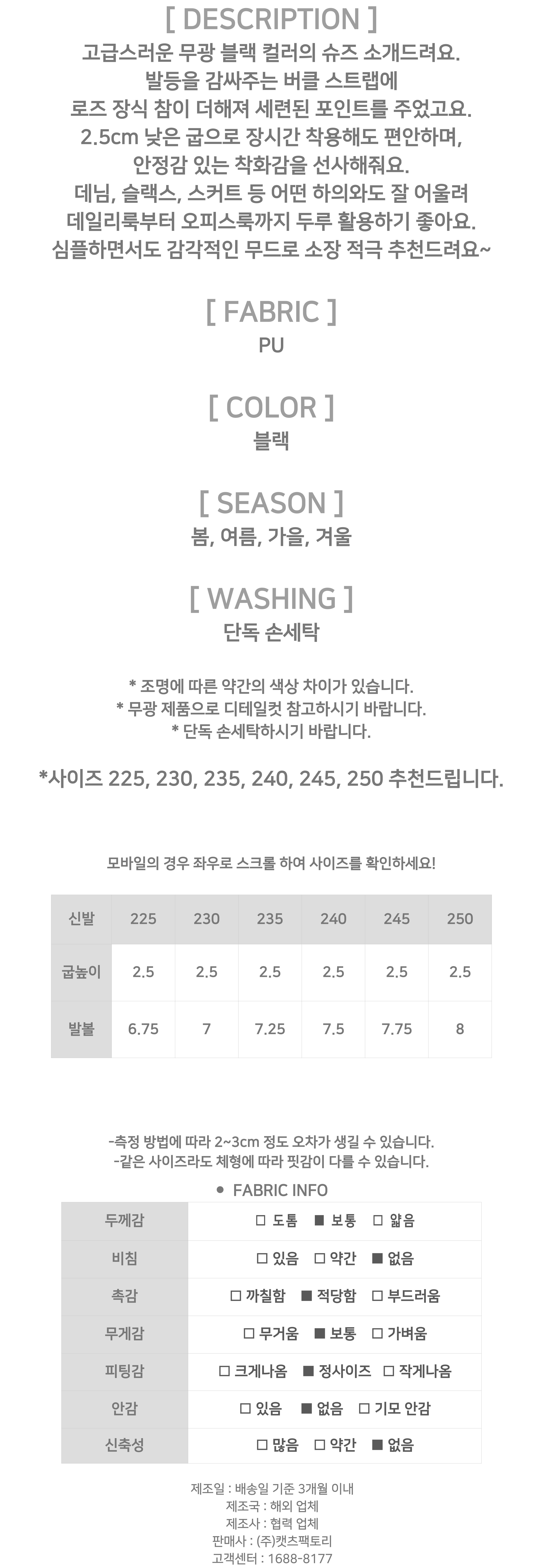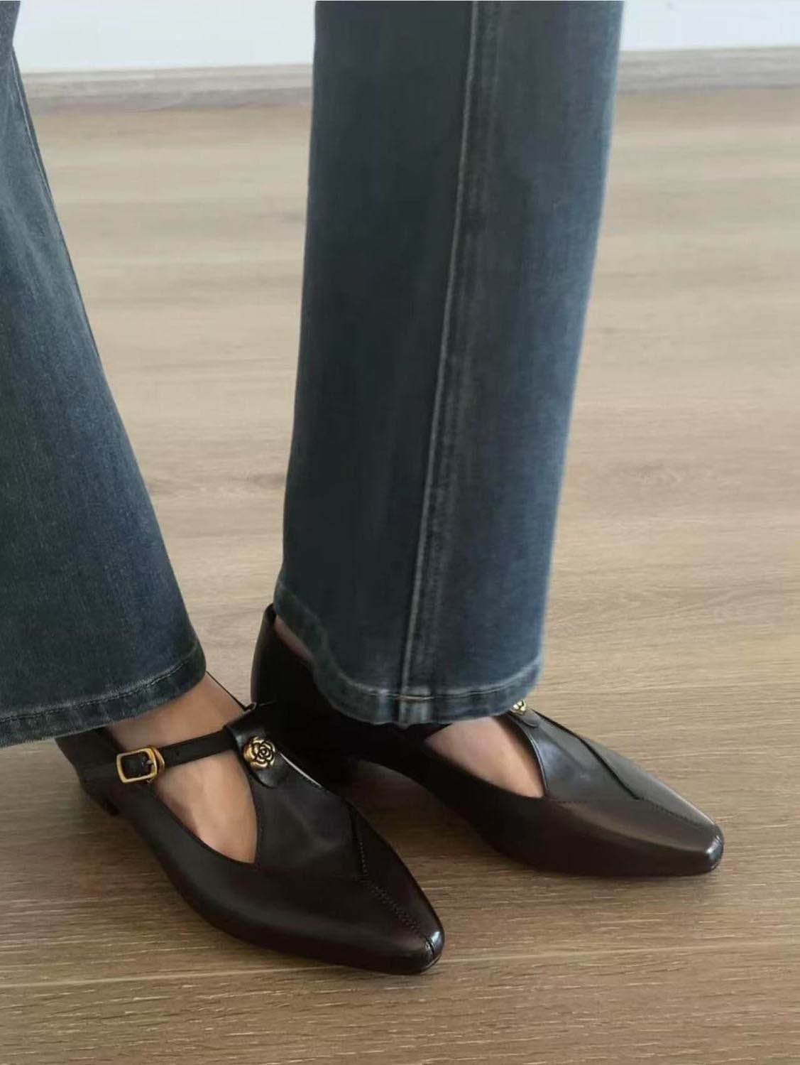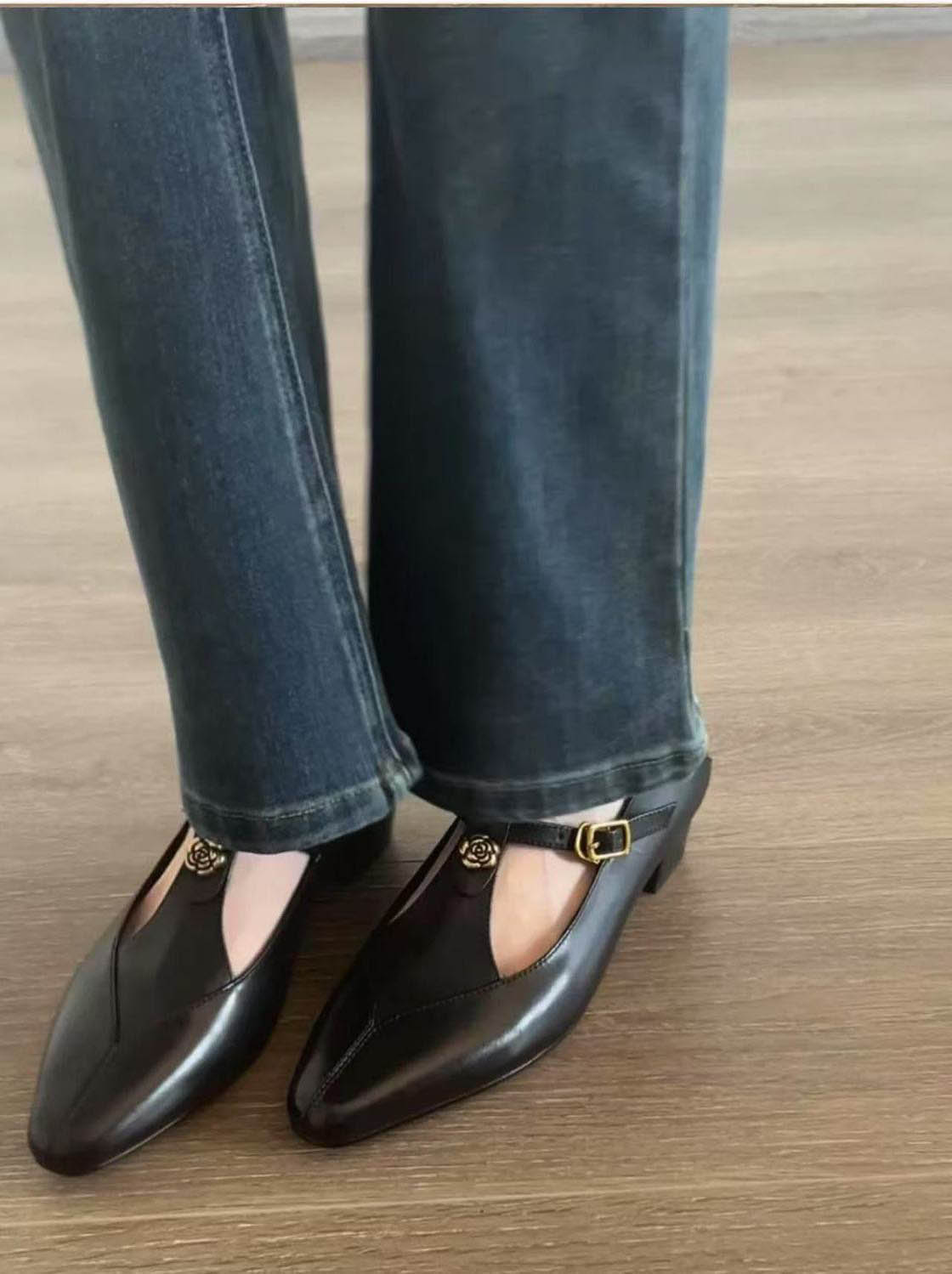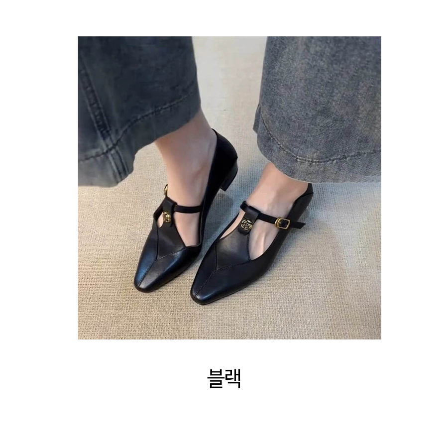 ◈[당일발송]  로즈 버클 무광 블랙 플랫슈즈