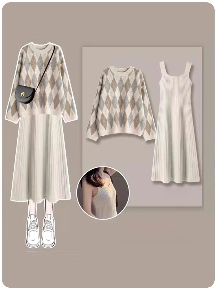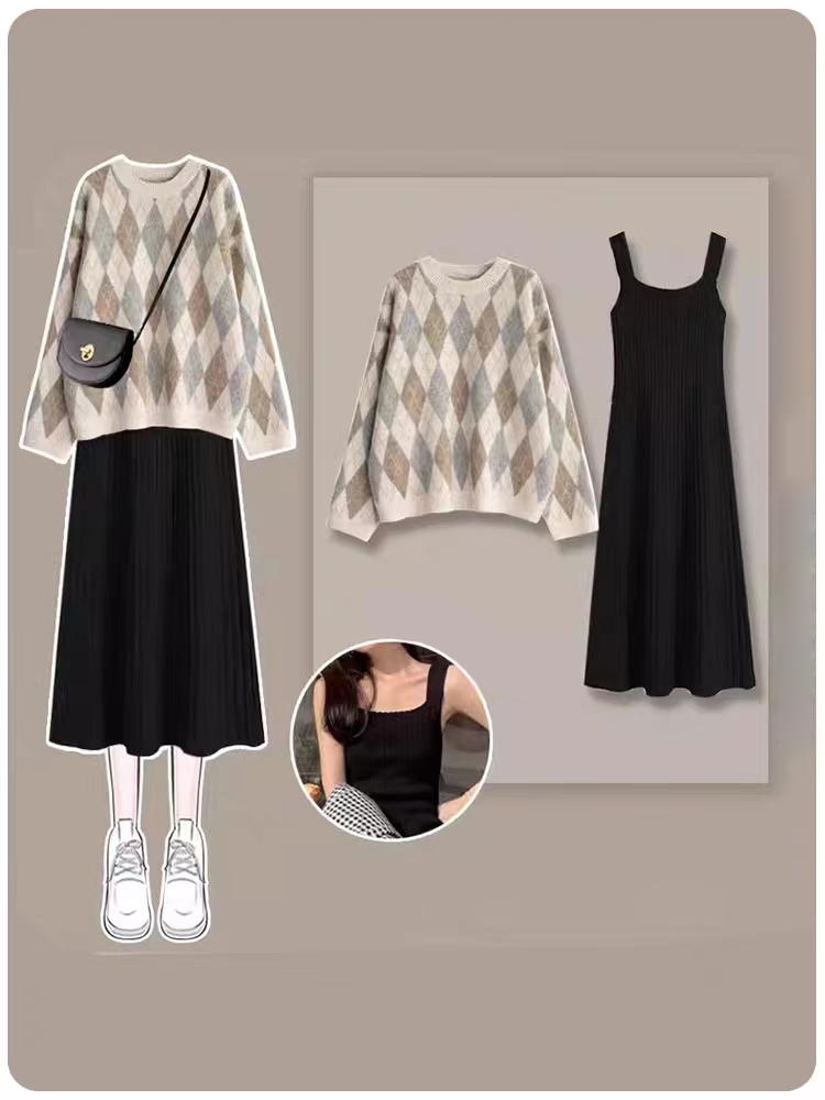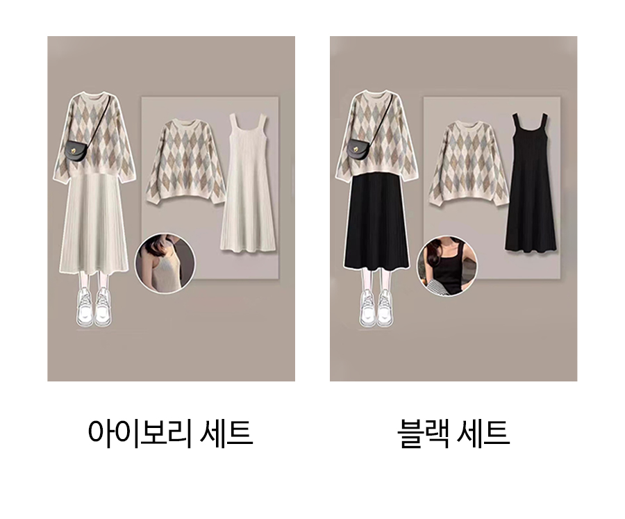 175997 아가일 니트&민소매 니트 원피스 2SET 49290