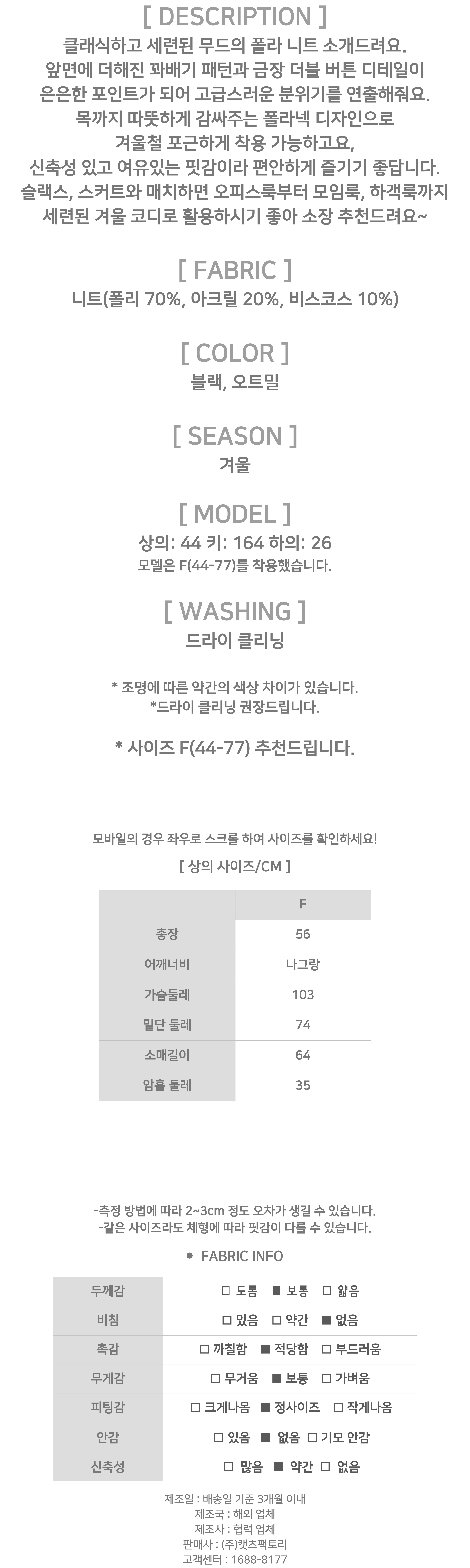 181161 [당일발송]클래식 더블 버튼 폴라넥 니트 30990