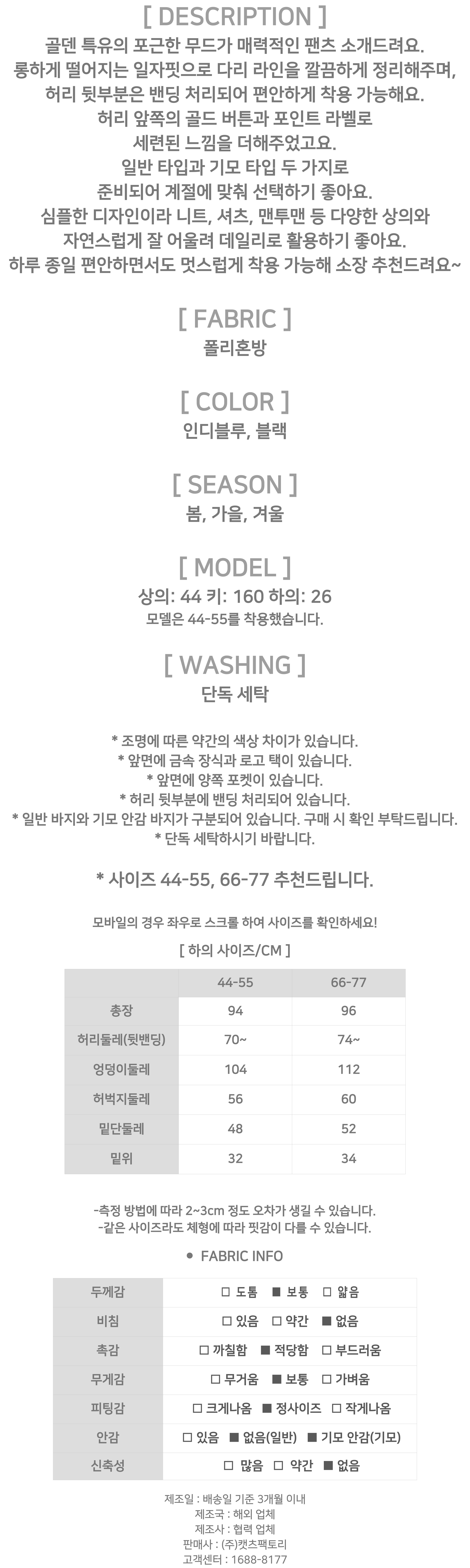 일자핏 포인트 라벨 골덴 팬츠[일반/기모 2종류]