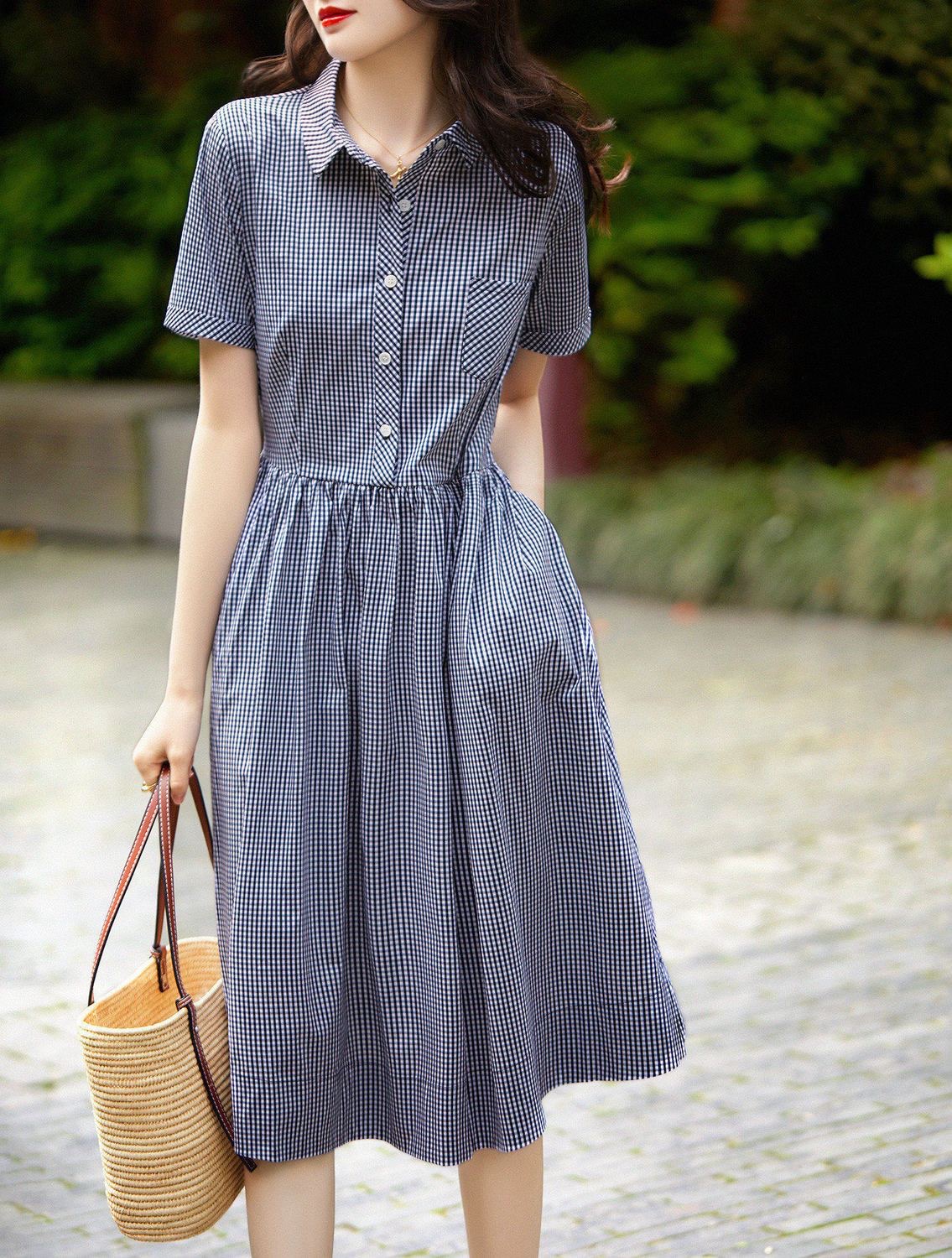 174235 ◈[당일발송] ★토요특가 50%★캐주얼 체크 카라 원피스 32890