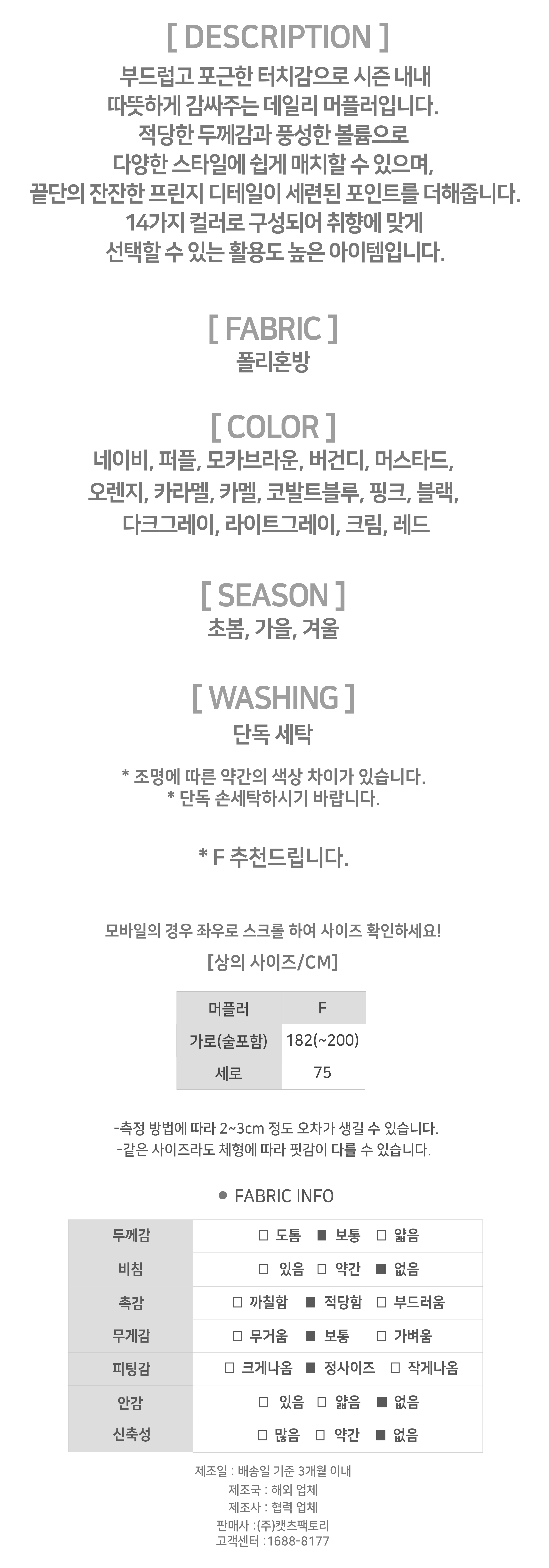 - 상품의 색상은 사용하시는 모니터 사양에 따라 실제 색상과 다소 차이가 있을 수 있으며, 이는 불량의 사유가 되지 않습니다.