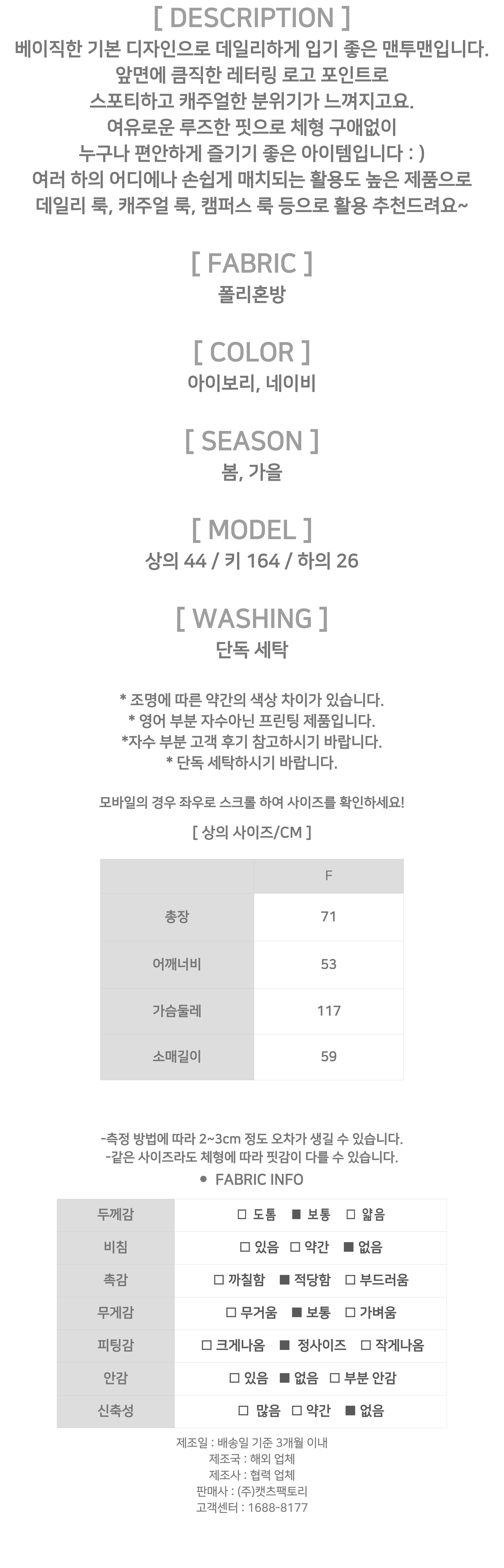 - 상품의 색상은 사용하시는 모니터 사양에 따라 실제 색상과 다소 차이가 있을 수 있으며, 이는 불량의 사유가 되지 않습니다.