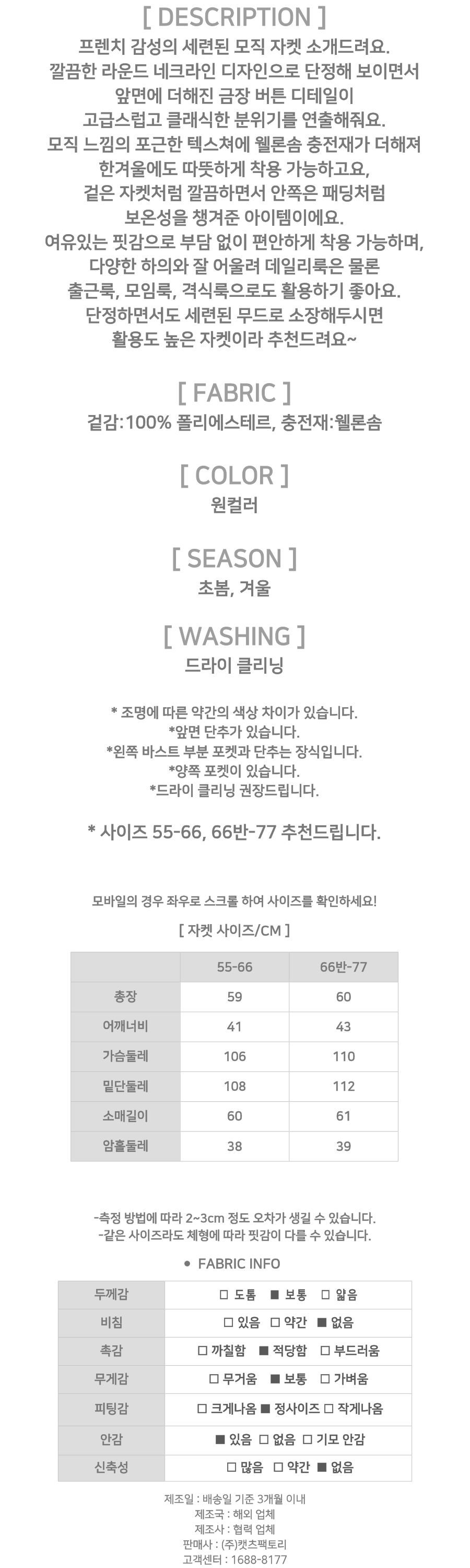 181420 ★목요특가 자정마감 50%★프렌치 무드 금장 모직 자켓 59980