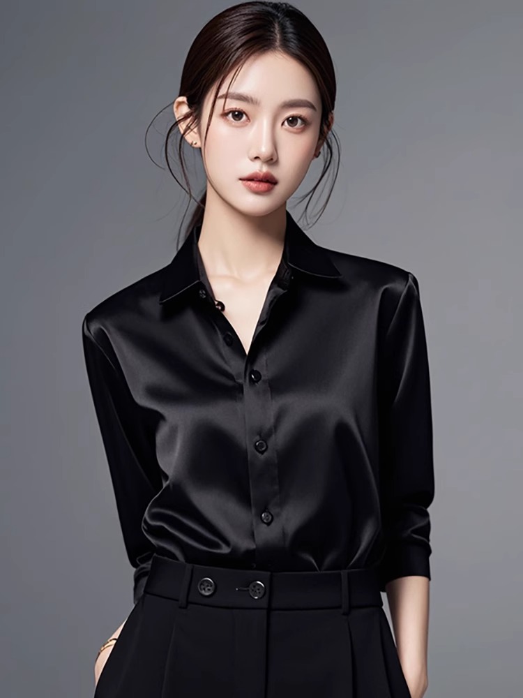 블랙 새틴 모던 블라우스