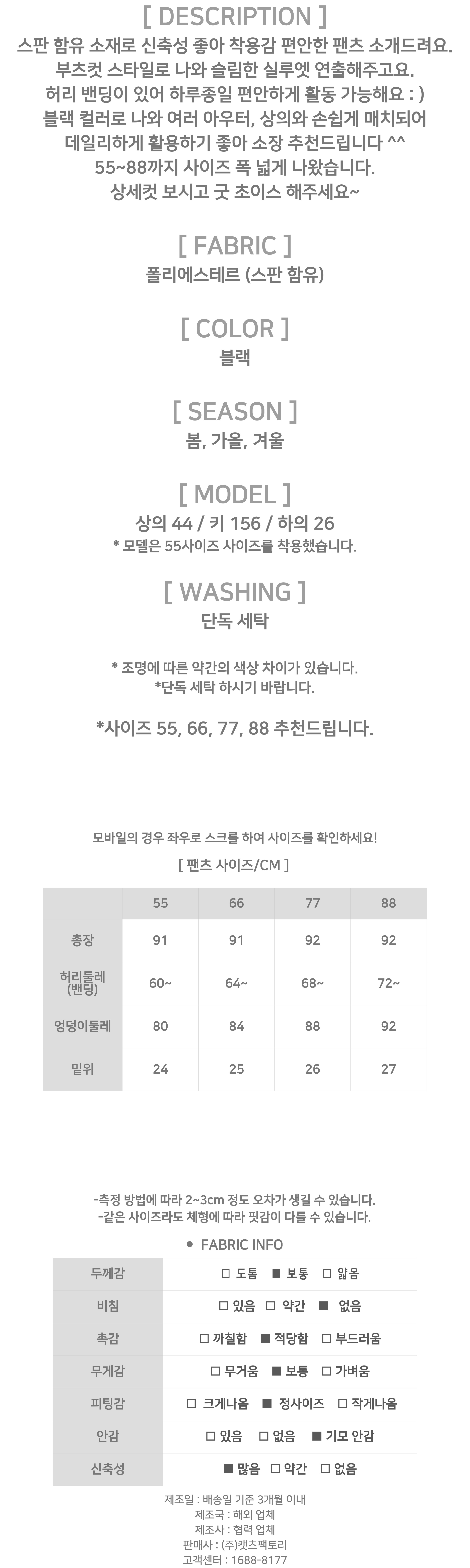 172948 ★토요특가 자정마감 50%★★토요특가★쫀쫀 스판 기모 부츠컷 슬랙스 27980