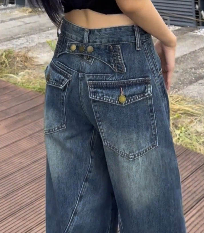 182084 유니크 백버튼 워싱 데님 팬츠 30580