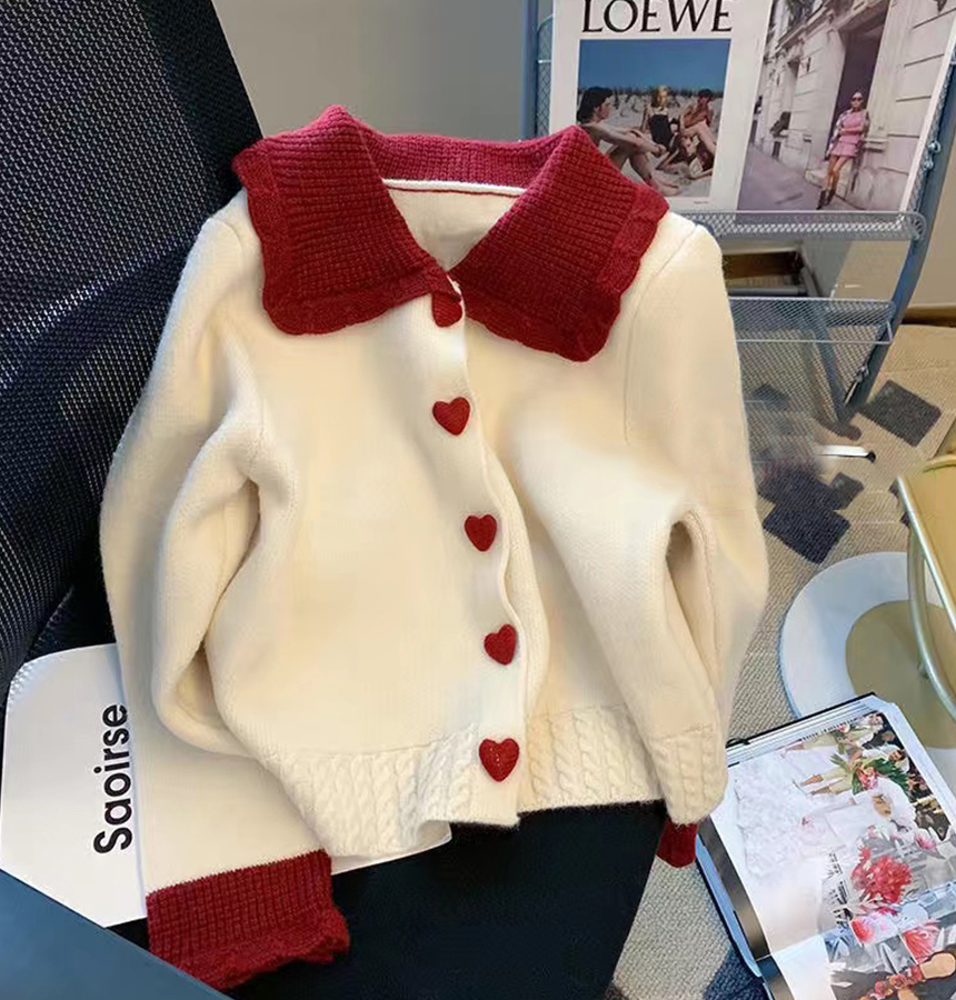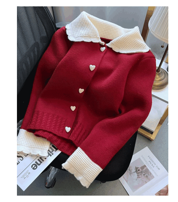 하트 버튼 카라 니트 가디건
