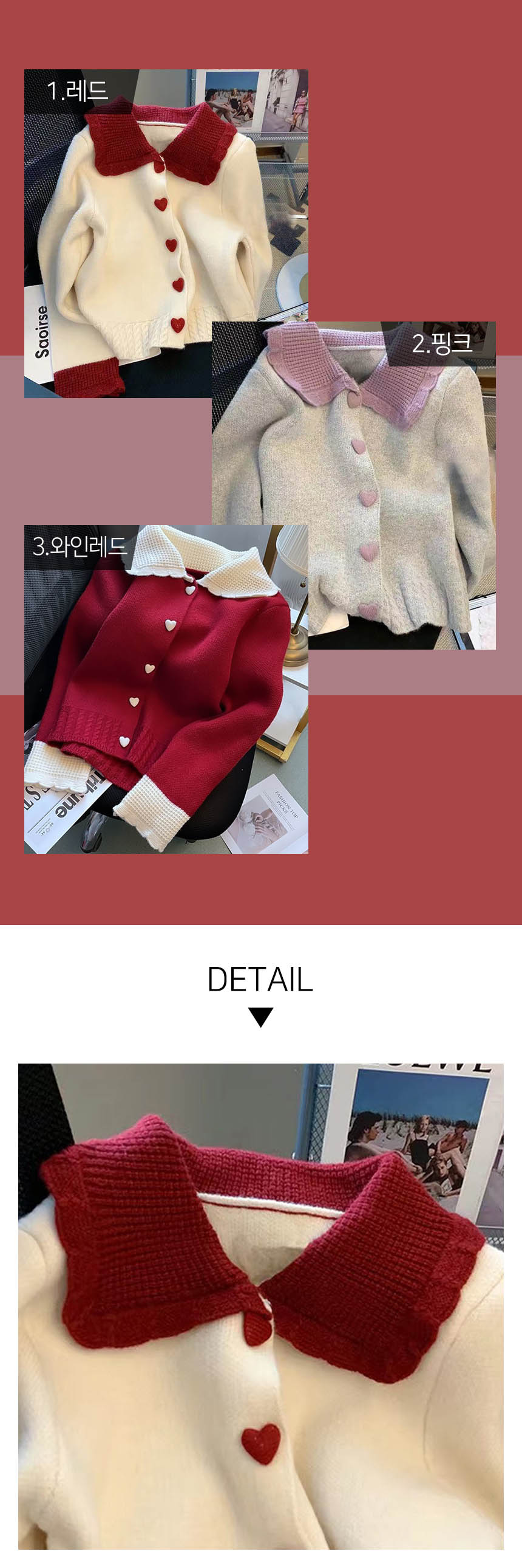 ◈[당일발송] ★목요특가 자정마감 50%★하트 버튼 카라 니트 가디건
