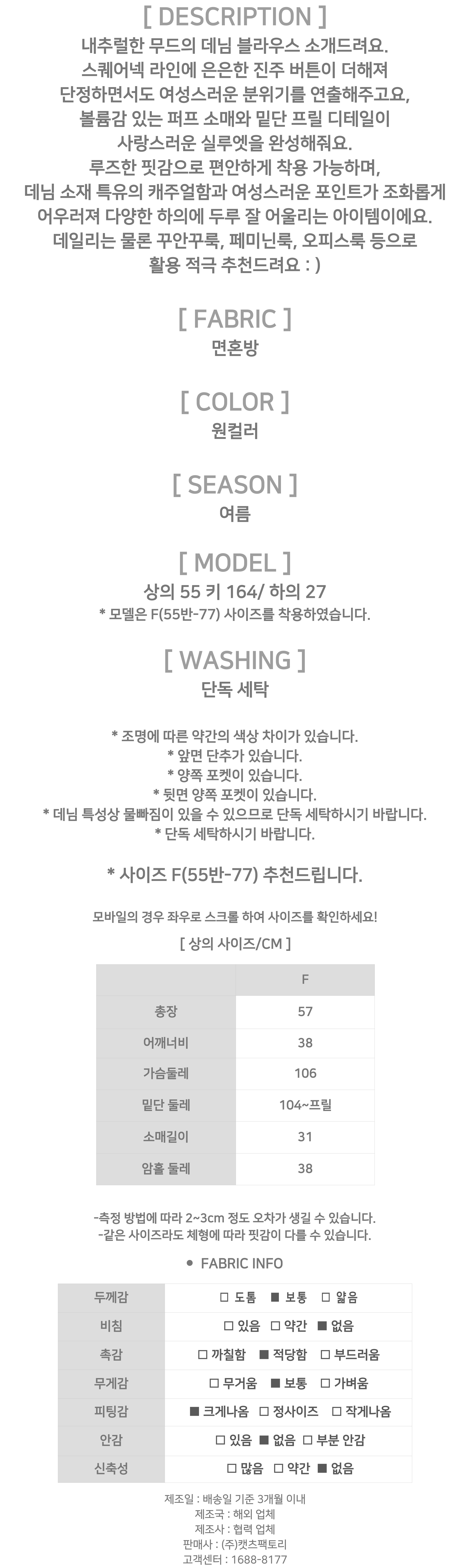 179508 ◈[당일발송] 진주 버튼 프릴 데님 블라우스 29990