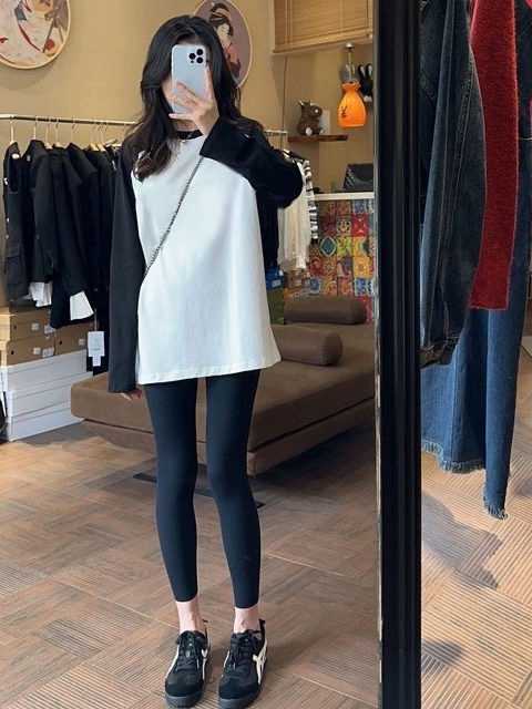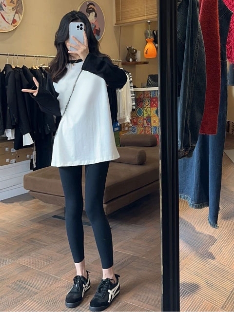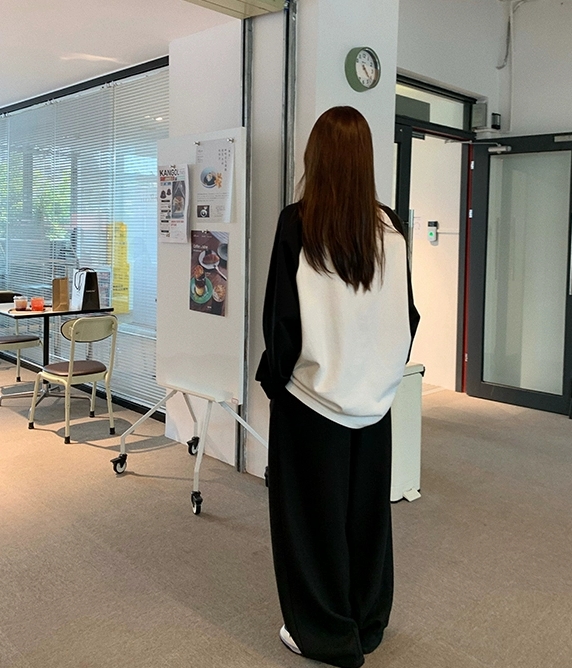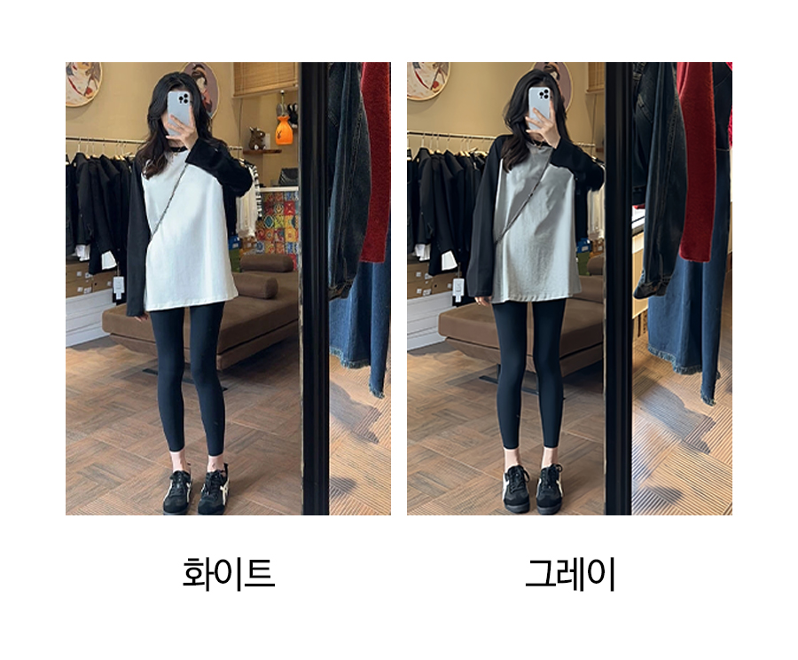 캐주얼 배색 루즈핏 긴팔 티셔츠