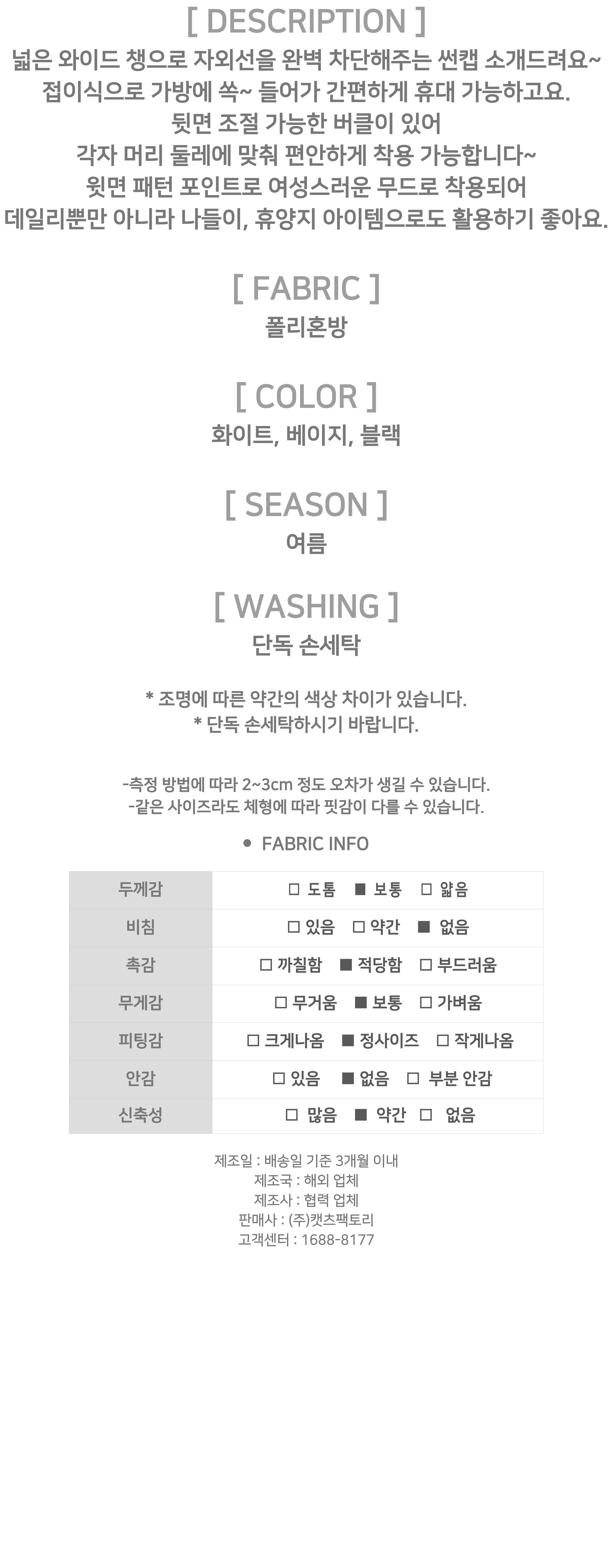- 제품 사이즈는 측정 방식에 따라 2~3cm의 오차가 있을 수 있으며, 이는 불량의 사유가 되지 않습니다.