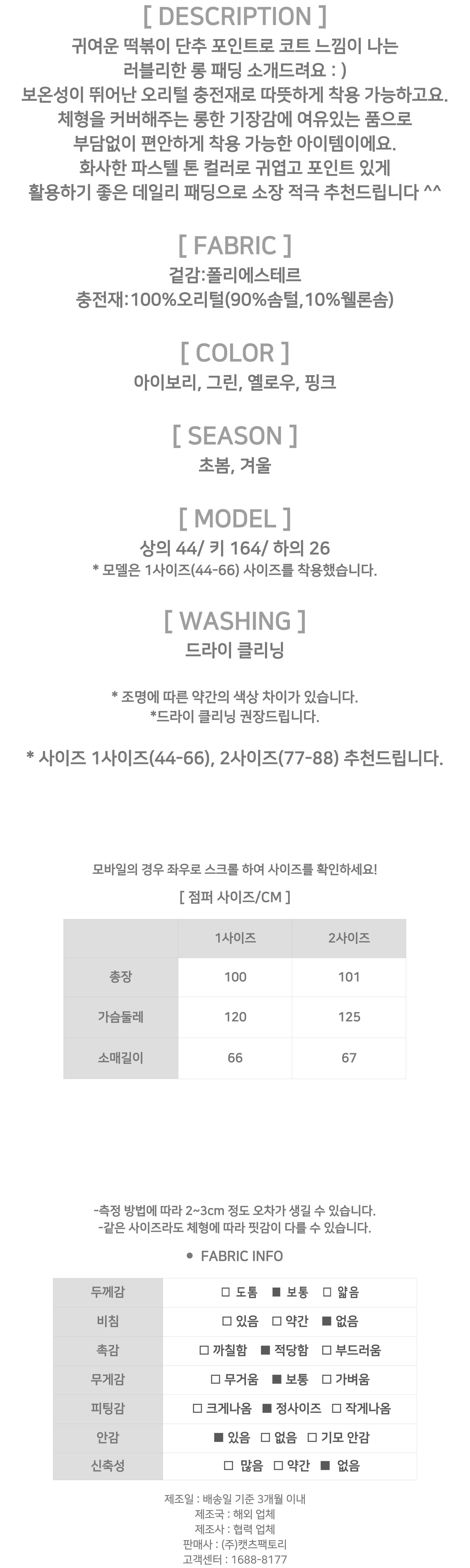 - 반품시 택배 포장을 수령한 대로 하지 않거나 부실하게 하여 택배사 운송도중 물품이 훼손, 오염되어 입고된 경우 (택배사 과실 제외) - 상품의 색상은 사용하시는 모니터 사양에 따라 실제 색상과 다소 차이가 있을 수 있으며, 이는 불량의 사유가 되지 않습니다. - 제품 사이즈는 측정 방식에 따라 2~3cm의 오차가 있을 수 있으며, 이는 불량의 사유가 되지 않습니다.
