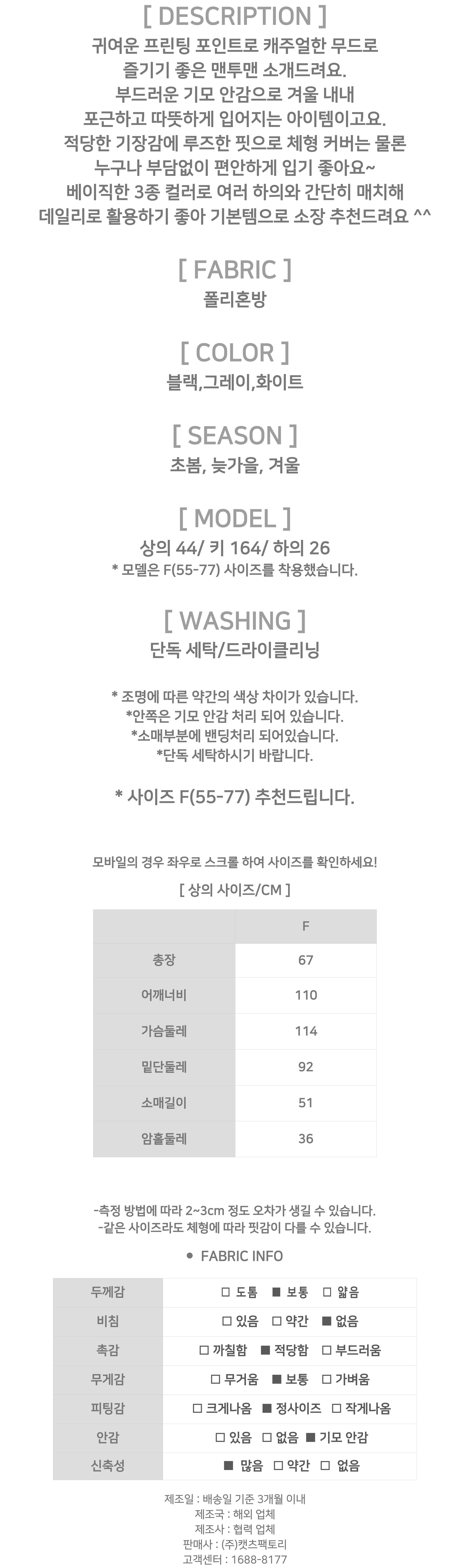 - 상품의 색상은 사용하시는 모니터 사양에 따라 실제 색상과 다소 차이가 있을 수 있으며, 이는 불량의 사유가 되지 않습니다.