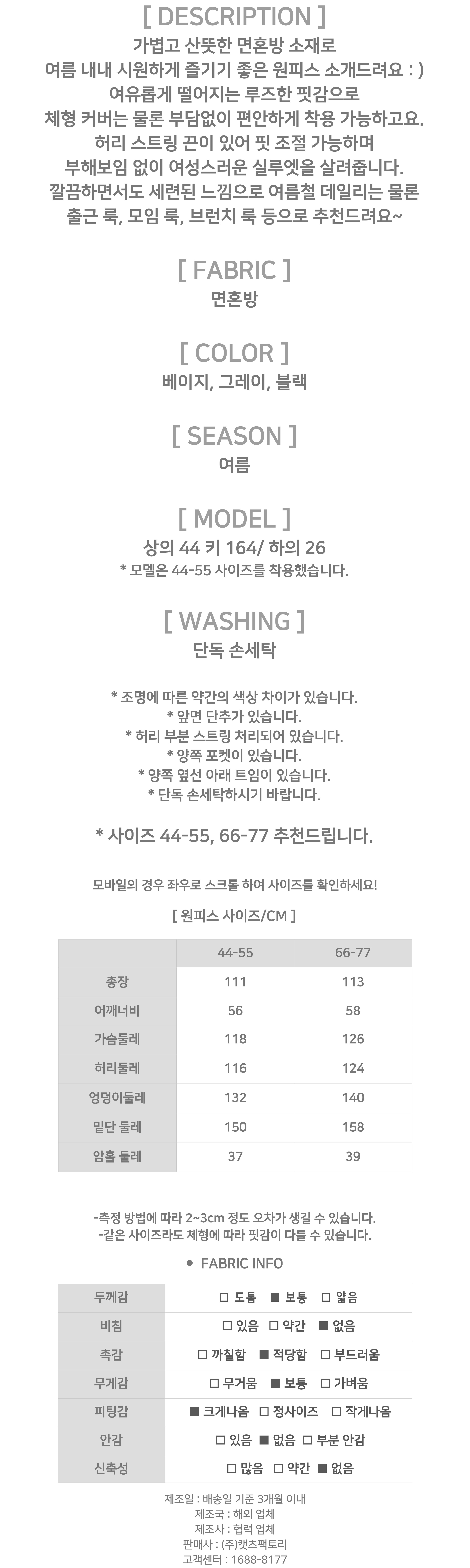 179009 ◈[당일발송] 여름 스트링 코튼 민소매 원피스 36690