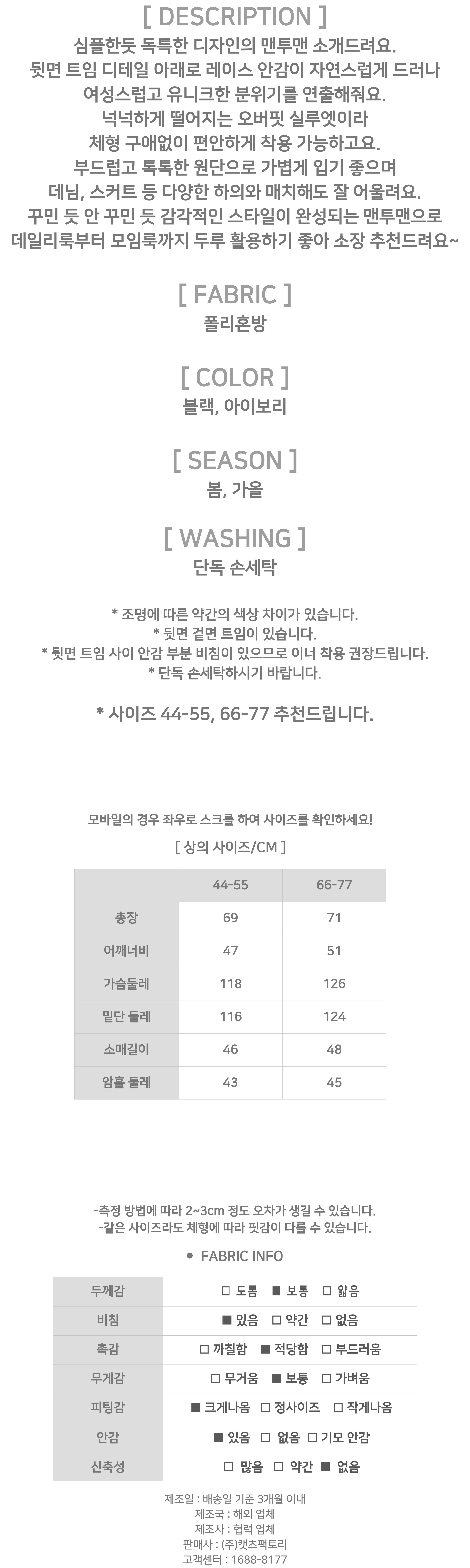 181158 백트임 레이스 레이어 유니크 맨투맨 21380