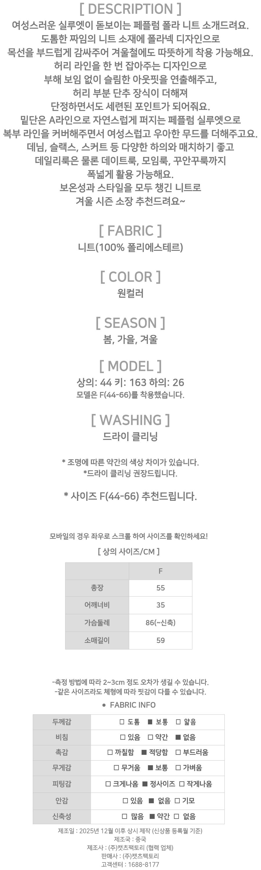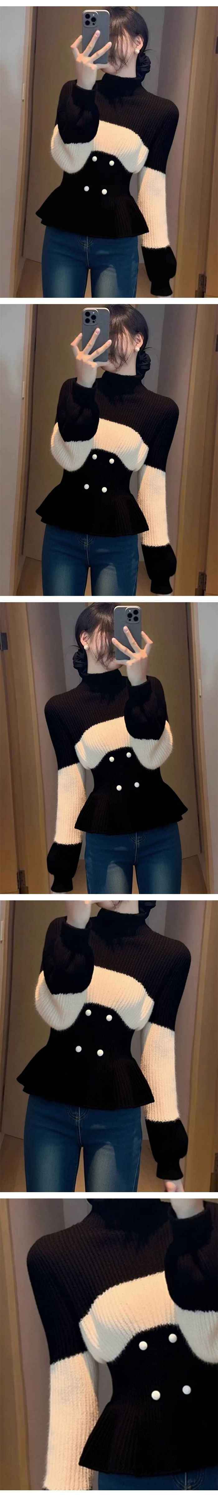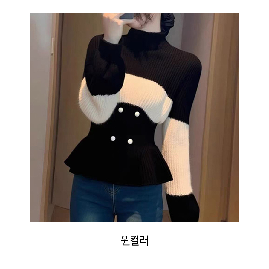 181850 슬림핏 버튼 페플럼 폴라 니트 23480
