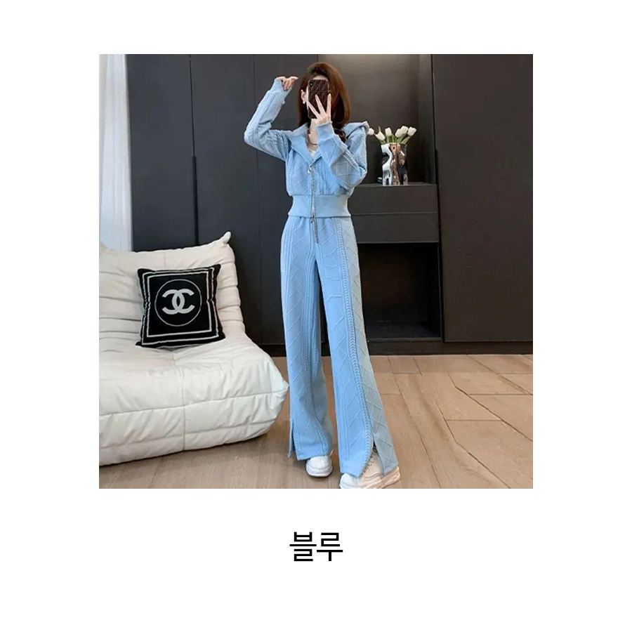 176244 ◈[당일발송] 패턴 집업 후드&트임 와이드 팬츠 2SET 34990