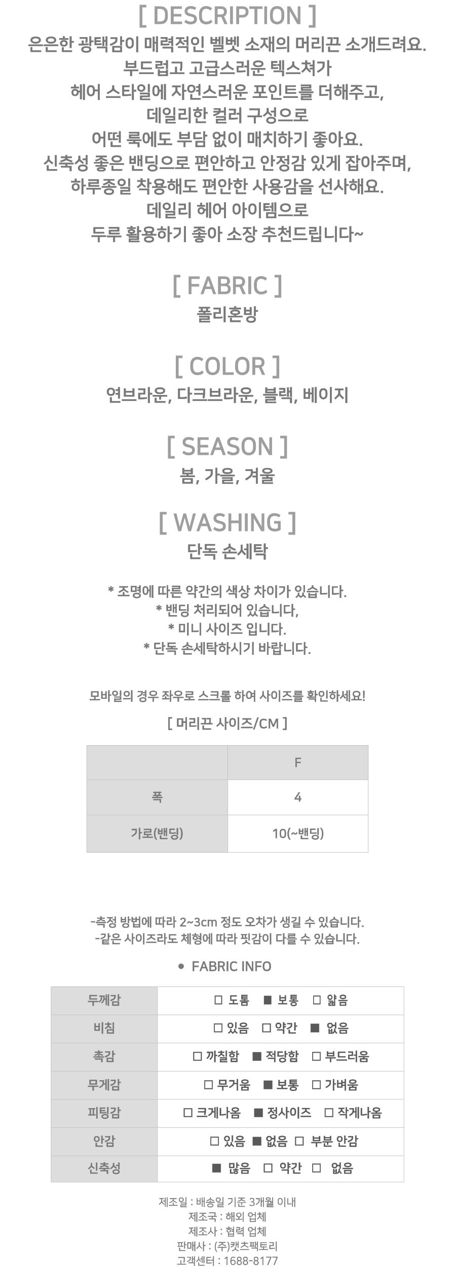 - 상품의 색상은 사용하시는 모니터 사양에 따라 실제 색상과 다소 차이가 있을 수 있으며, 이는 불량의 사유가 되지 않습니다.