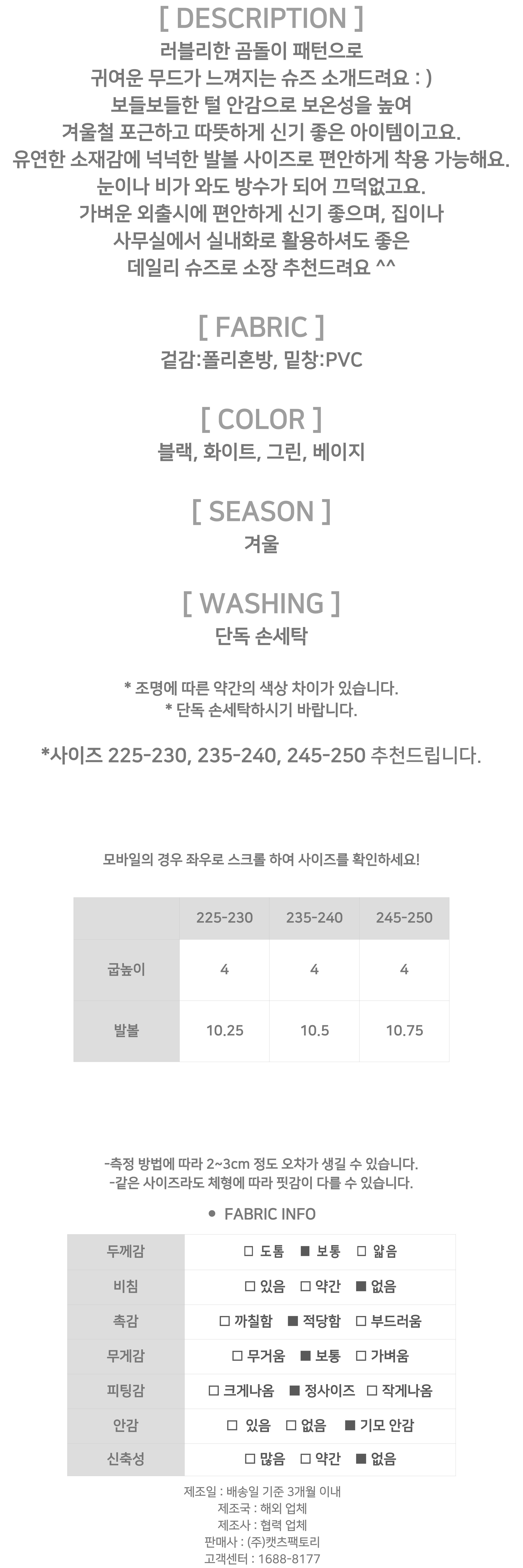 - 상품의 색상은 사용하시는 모니터 사양에 따라 실제 색상과 다소 차이가 있을 수 있으며, 이는 불량의 사유가 되지 않습니다.