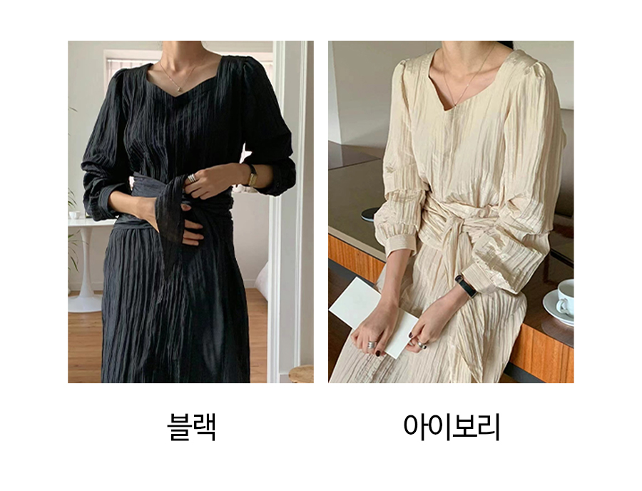 179843 ◈[당일발송] 퍼프 슬리브 주름 롱 원피스 41180